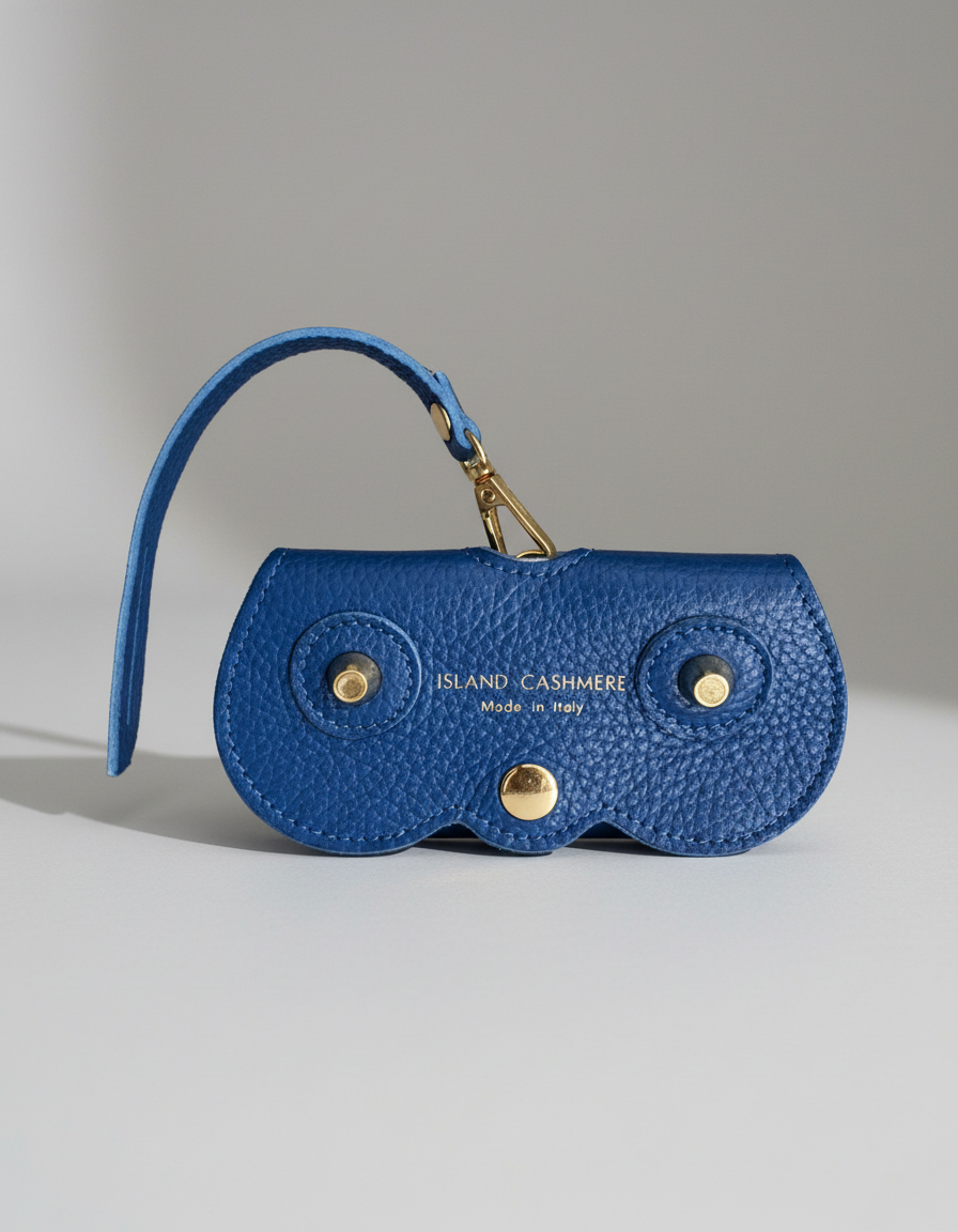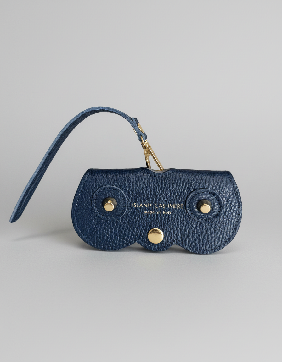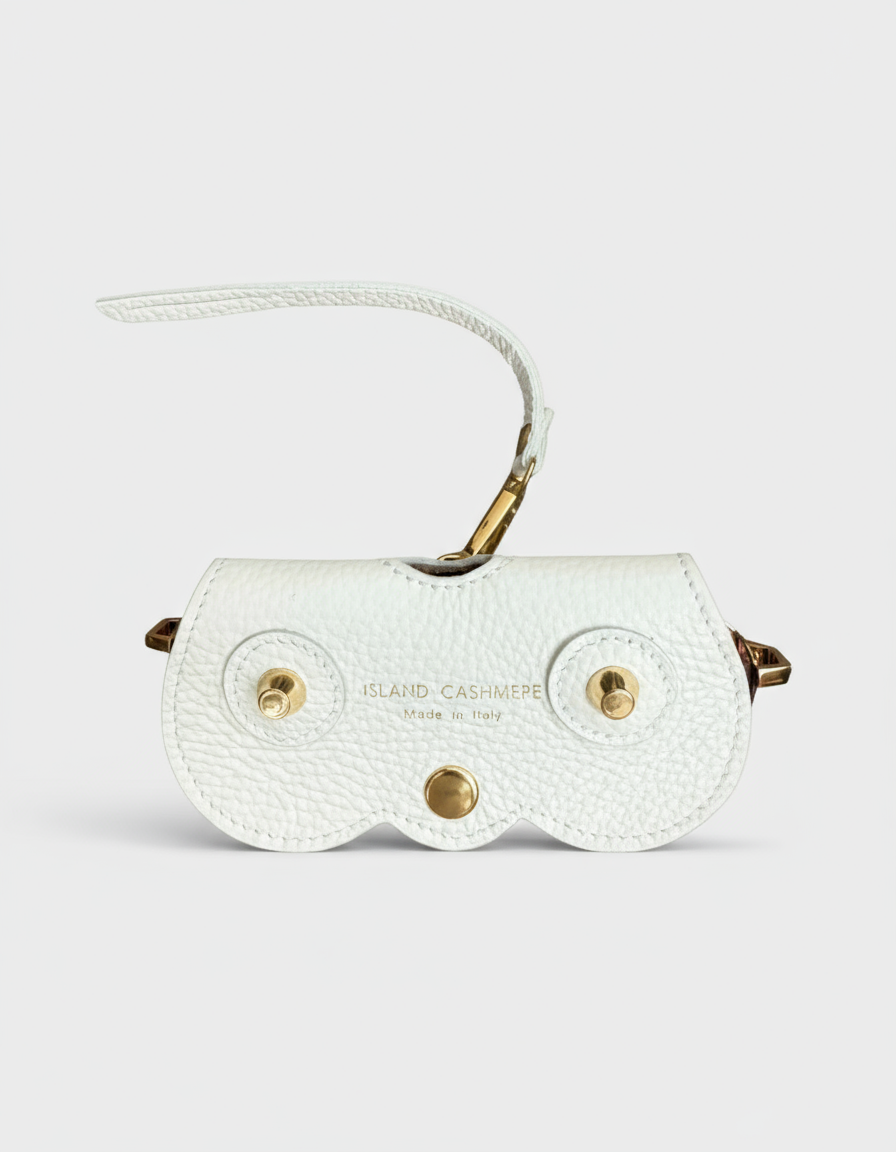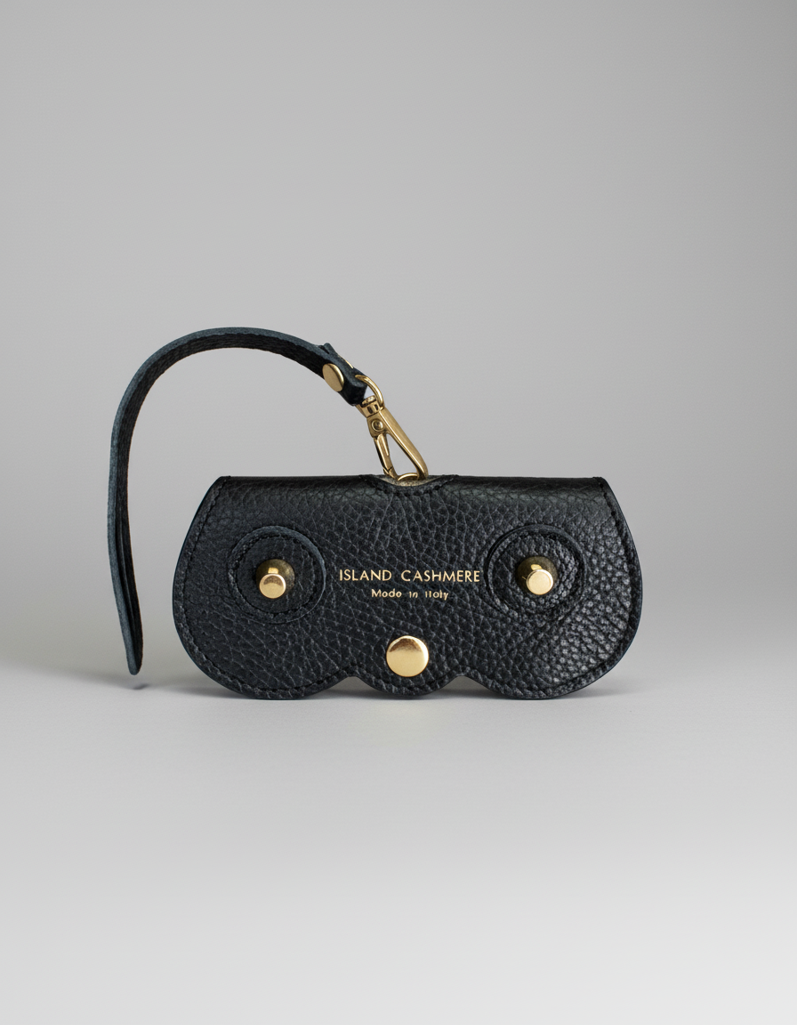 Handcrafted in Italy from supple pebbled leather, our Island Cashmere Eyeglass Case brings understated elegance to everyday life. Designed to attach effortlessly to any handbag, it keeps your sunglasses or readers stylishly protected and always within reach. The curved silhouette, gold-tone hardware, and subtle Island Cashmere logo lend a refined finish to this timeless accessory — a perfect blend of beauty and function for those who appreciate quiet luxury