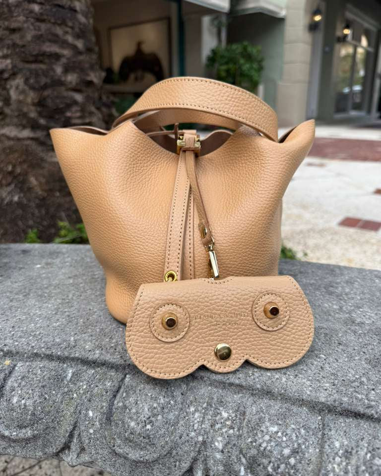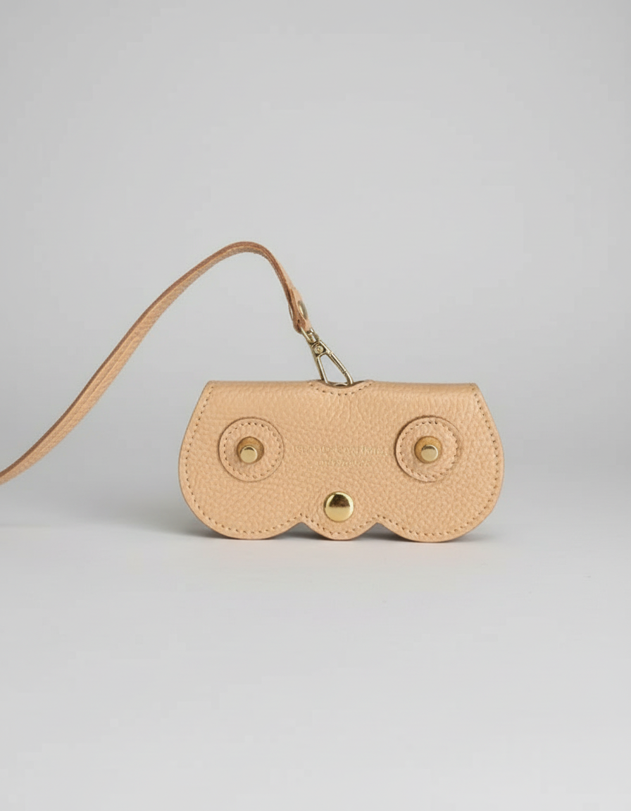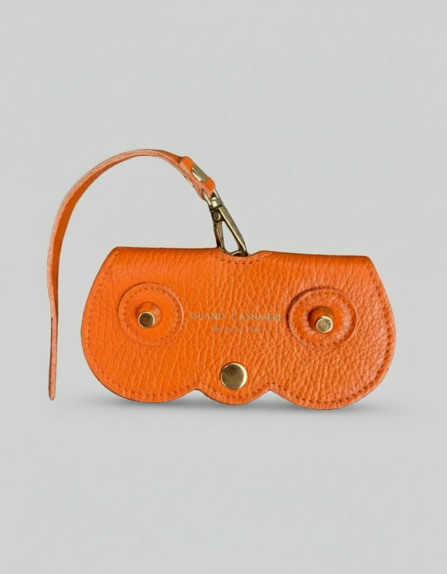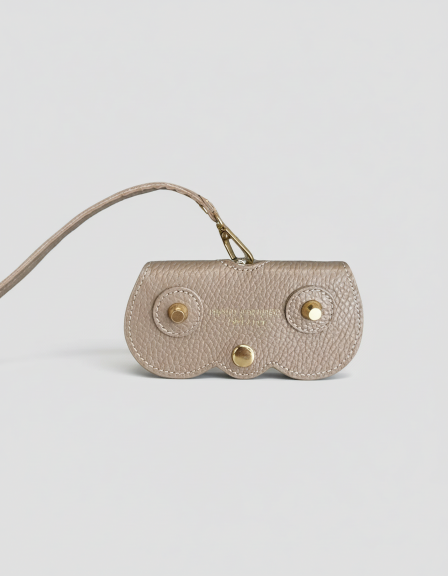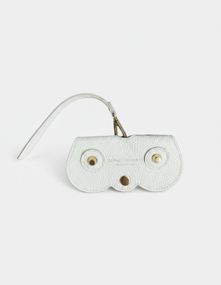 Handcrafted in Italy from supple pebbled leather, our Island Cashmere Eyeglass Case brings understated elegance to everyday life. Designed to attach effortlessly to any handbag, it keeps your sunglasses or readers stylishly protected and always within reach. The curved silhouette, gold-tone hardware, and subtle Island Cashmere logo lend a refined finish to this timeless accessory — a perfect blend of beauty and function for those who appreciate quiet luxury
