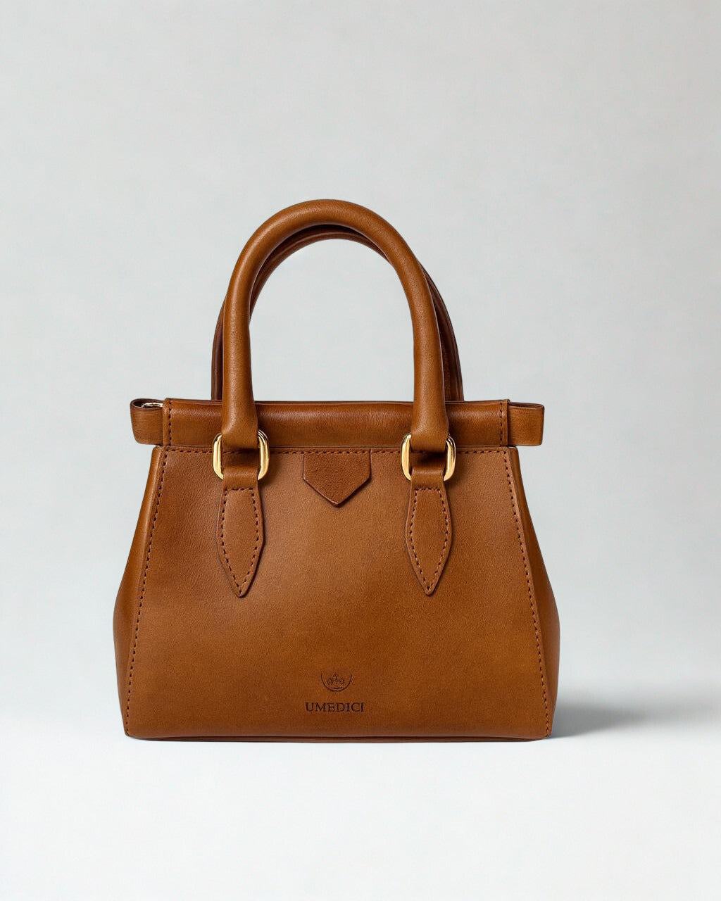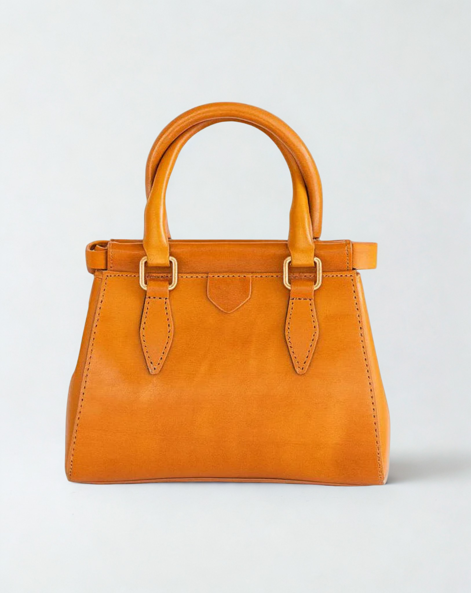 Handcrafted in Italy from the finest vegetable-tanned Italian leather, this elegant mini-top-handle bag combines timeless design with modern versatility. Its structured silhouette and smooth hand-dyed finish highlight the natural beauty and individuality of each piece — no two are exactly alike. Designed for both sophistication and practicality, it features dual rolled handles and a detachable shoulder strap for hands-free wear. Perfectly sized to hold your daily essentials, this petite statement piece transitions seamlessly from day to evening.