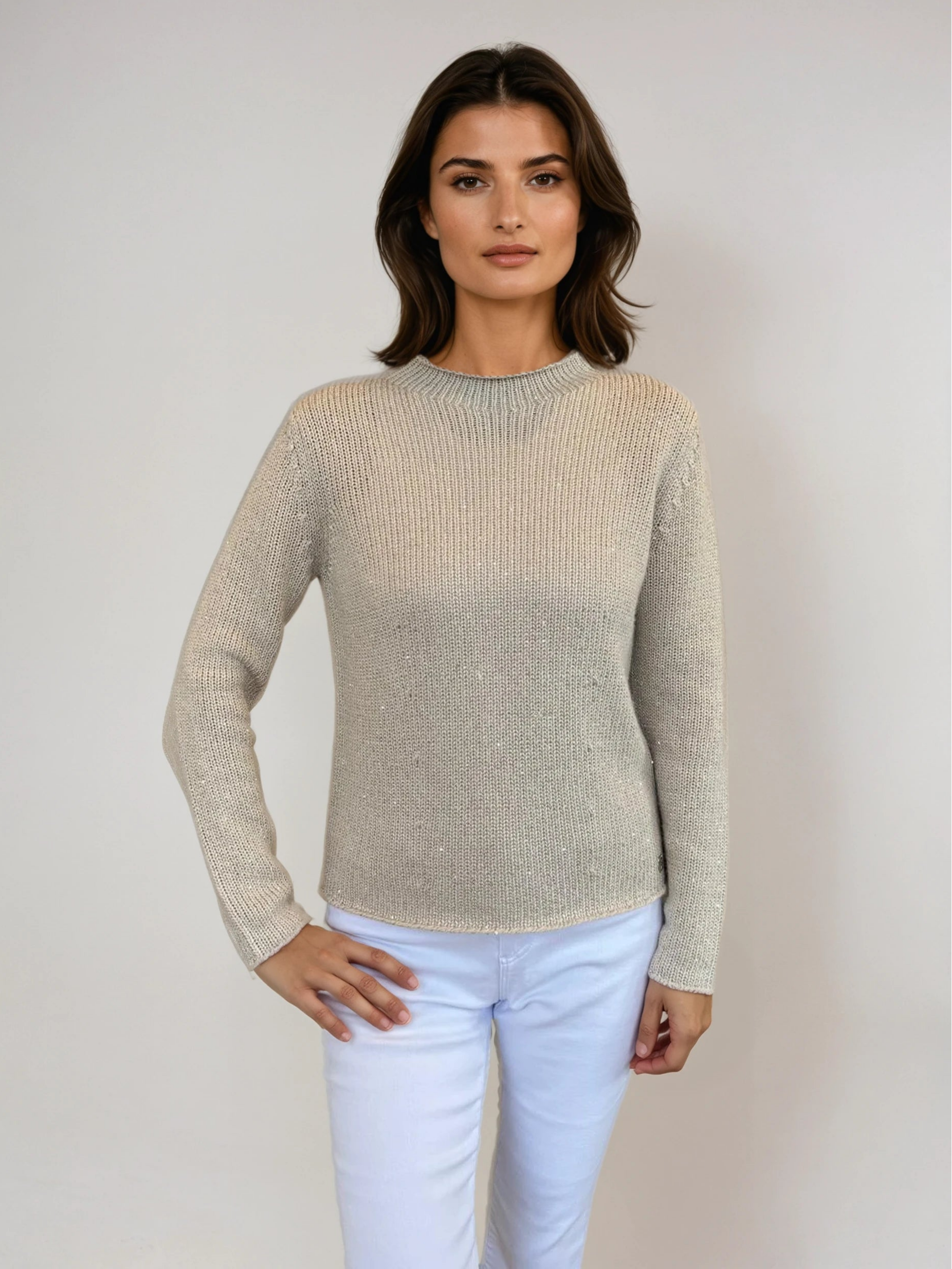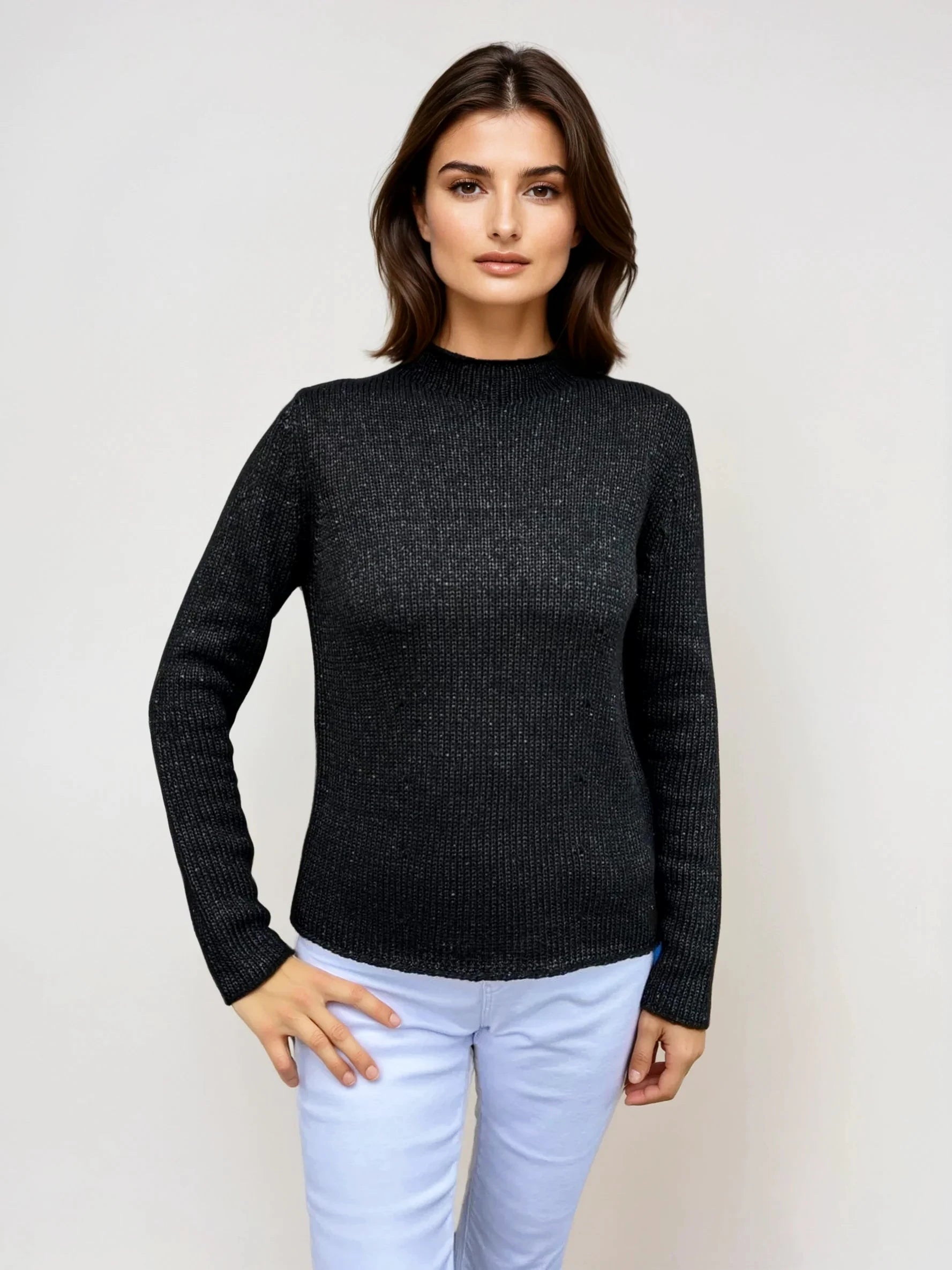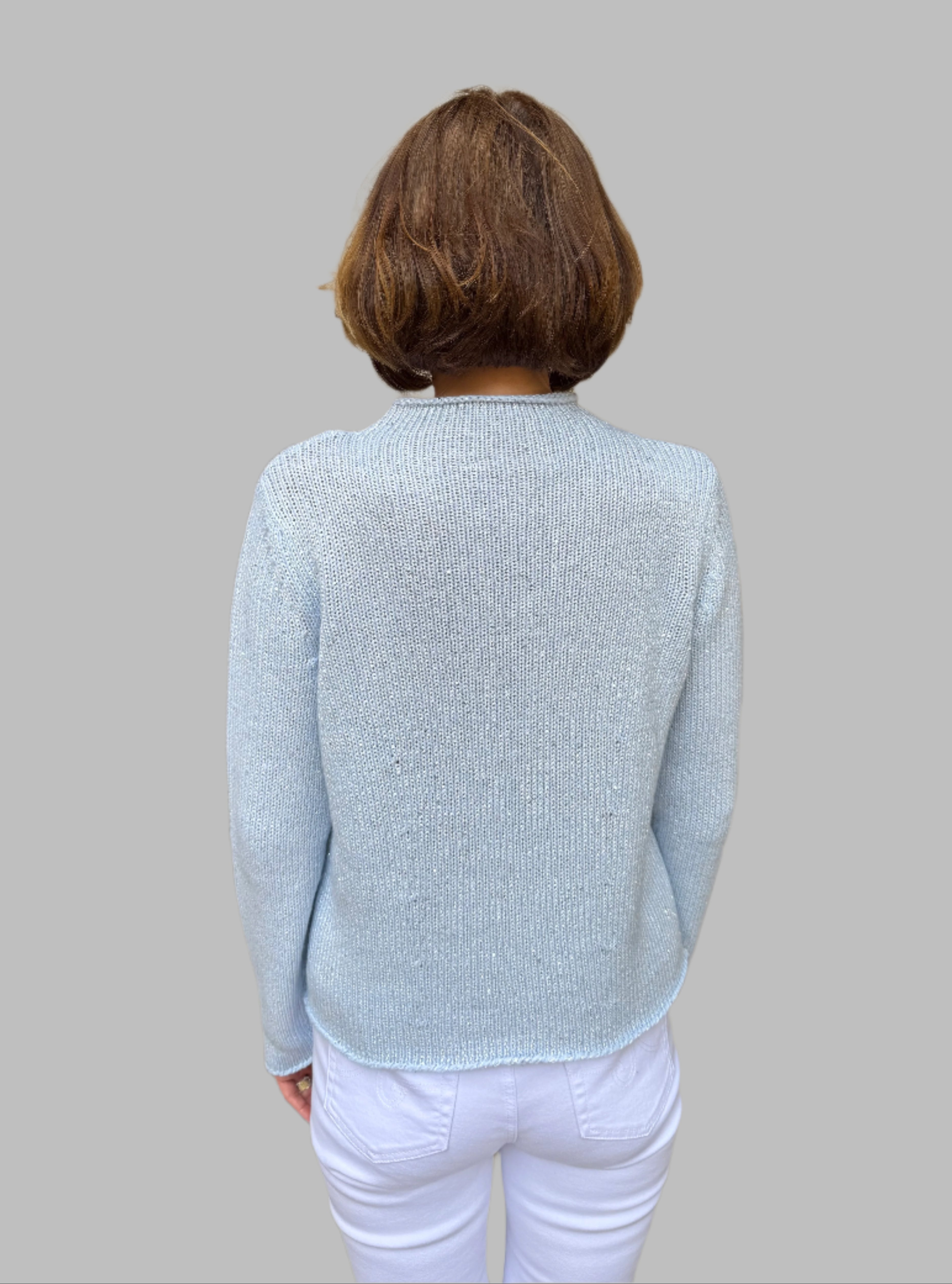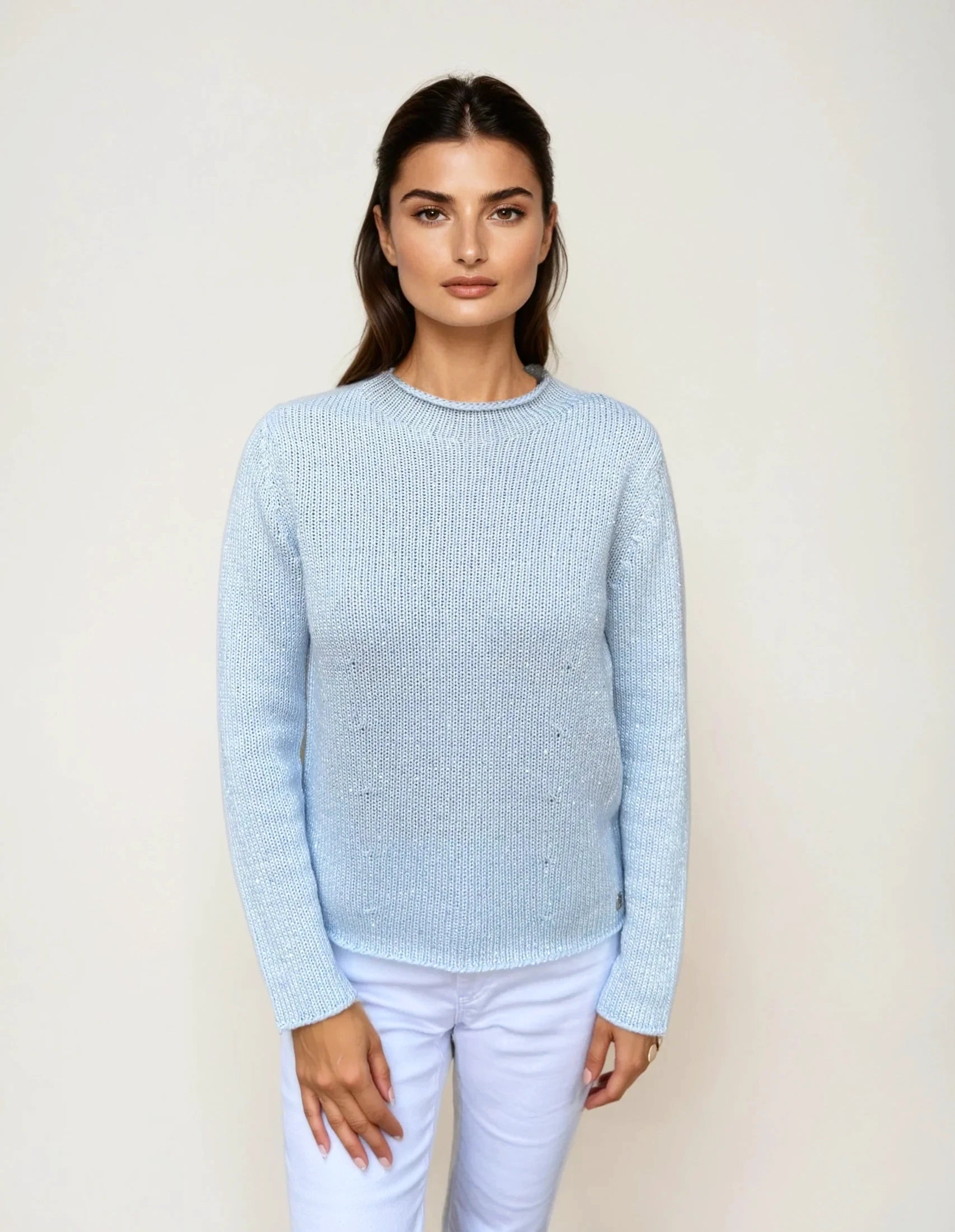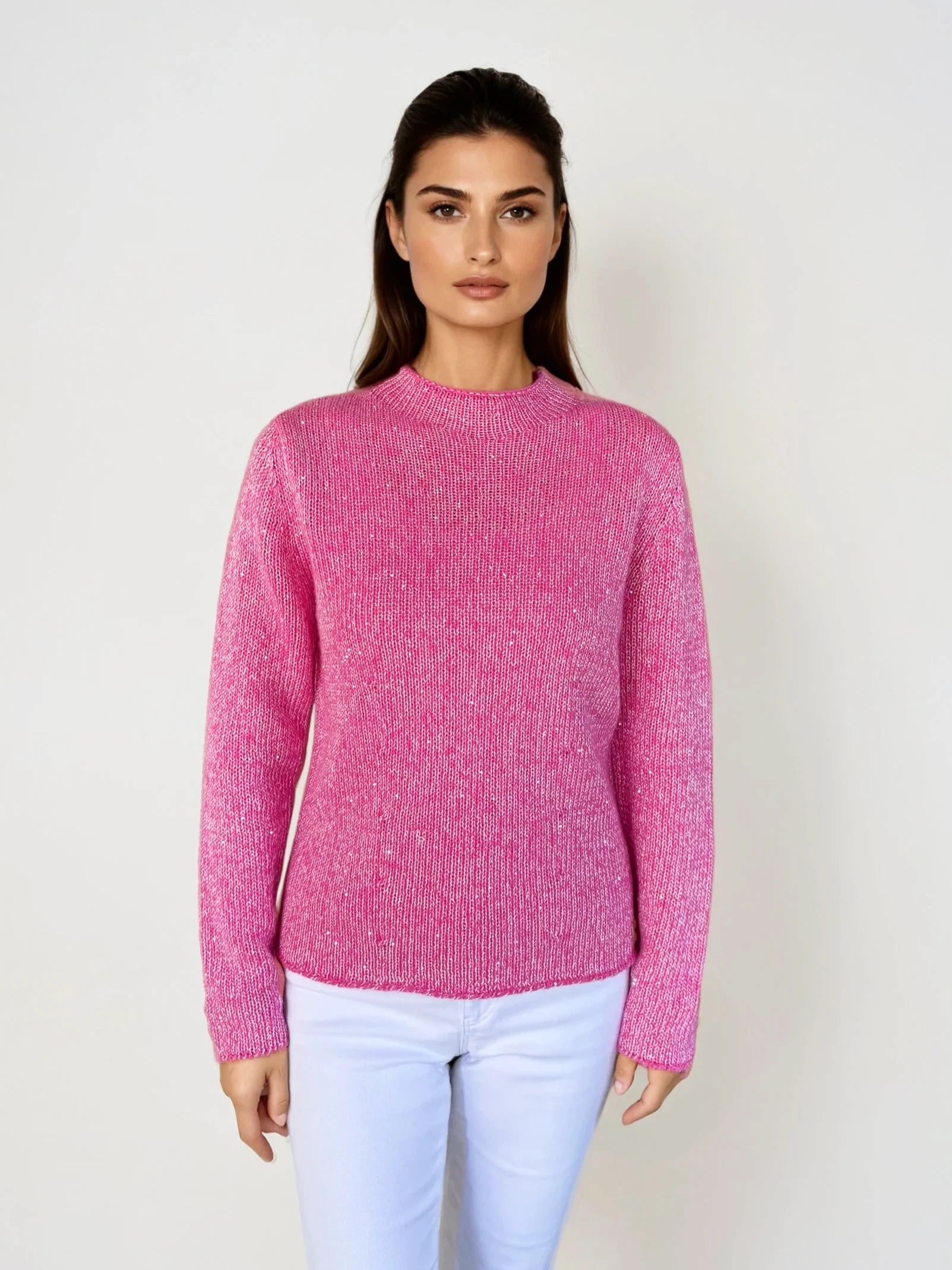 Add a touch of elegance to your wardrobe with this beautifully knitted sweater. Designed with a subtle shimmer, it features a classic crew neck, long sleeves, and a flattering fit. Perfect for layering or wearing on its own, this versatile piece adds sophistication to any look.