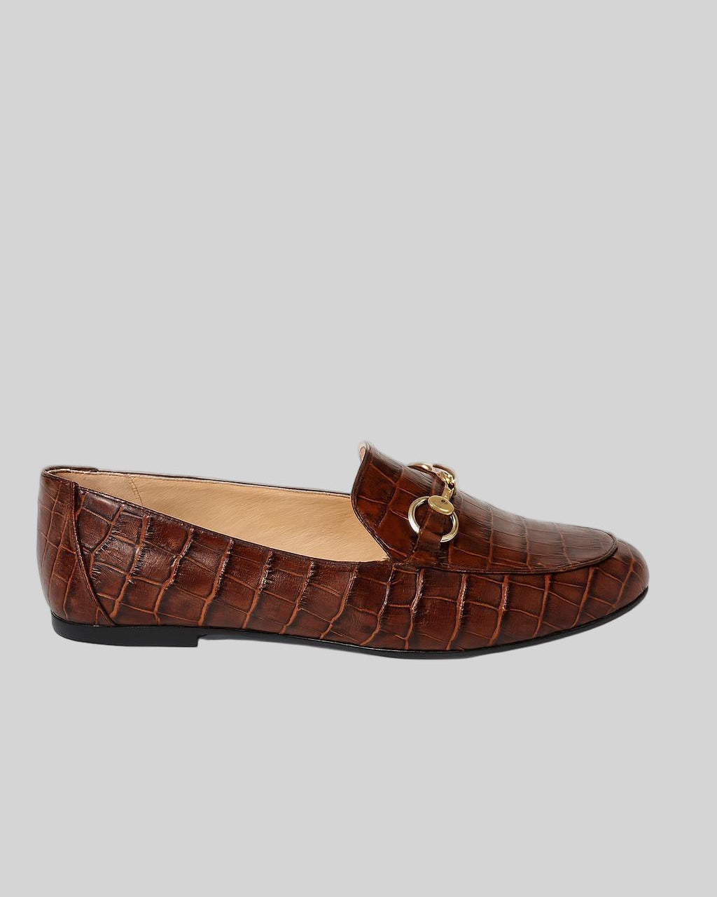 Elevate your everyday style with these timeless croc-embossed leather loafers. Crafted in rich brown leather with a subtle sheen, they feature a classic silhouette enhanced by elegant horsebit hardware in polished silver. The almond toe and low-profile design make them a versatile choice for both casual and sophisticated looks.