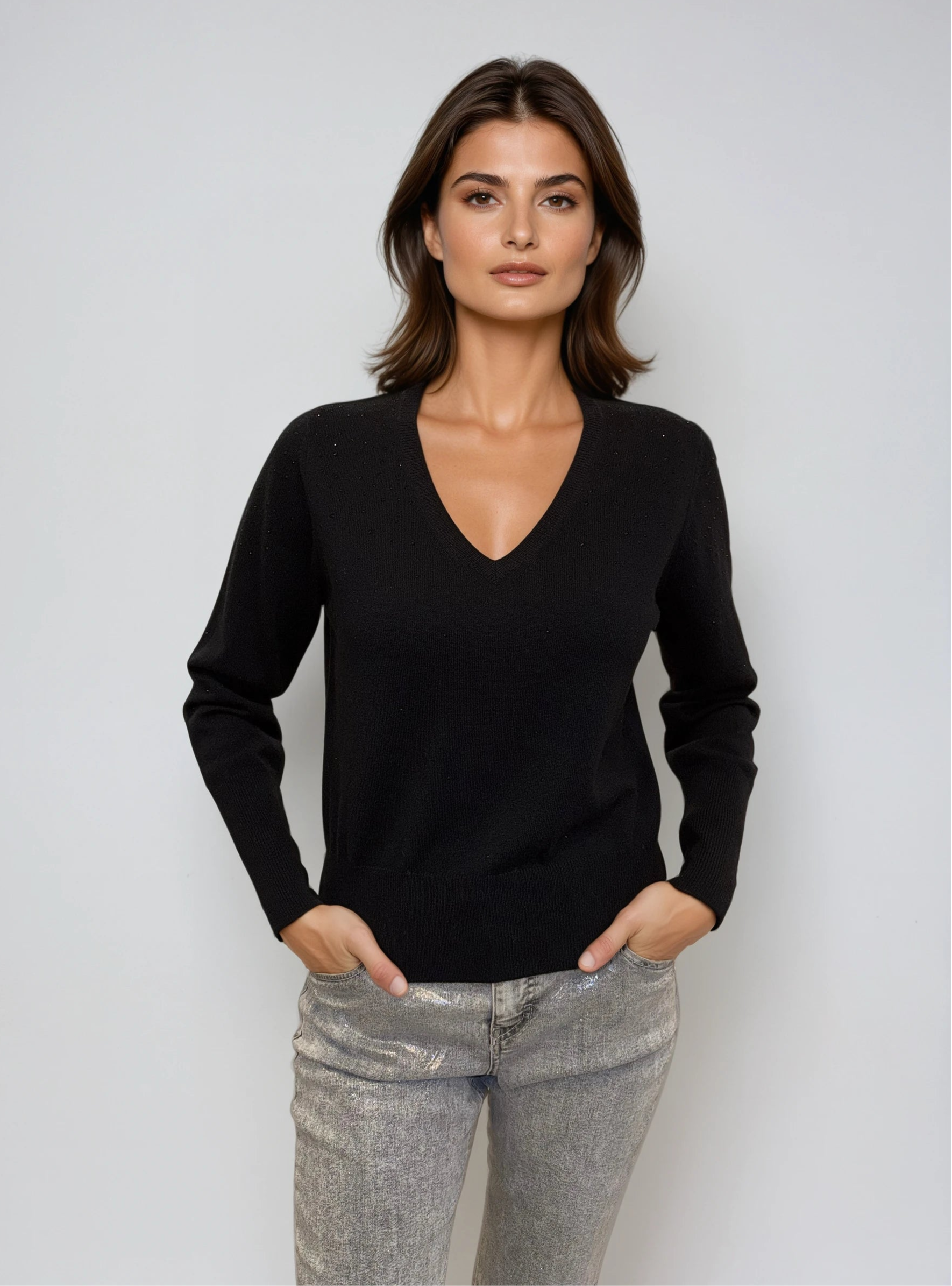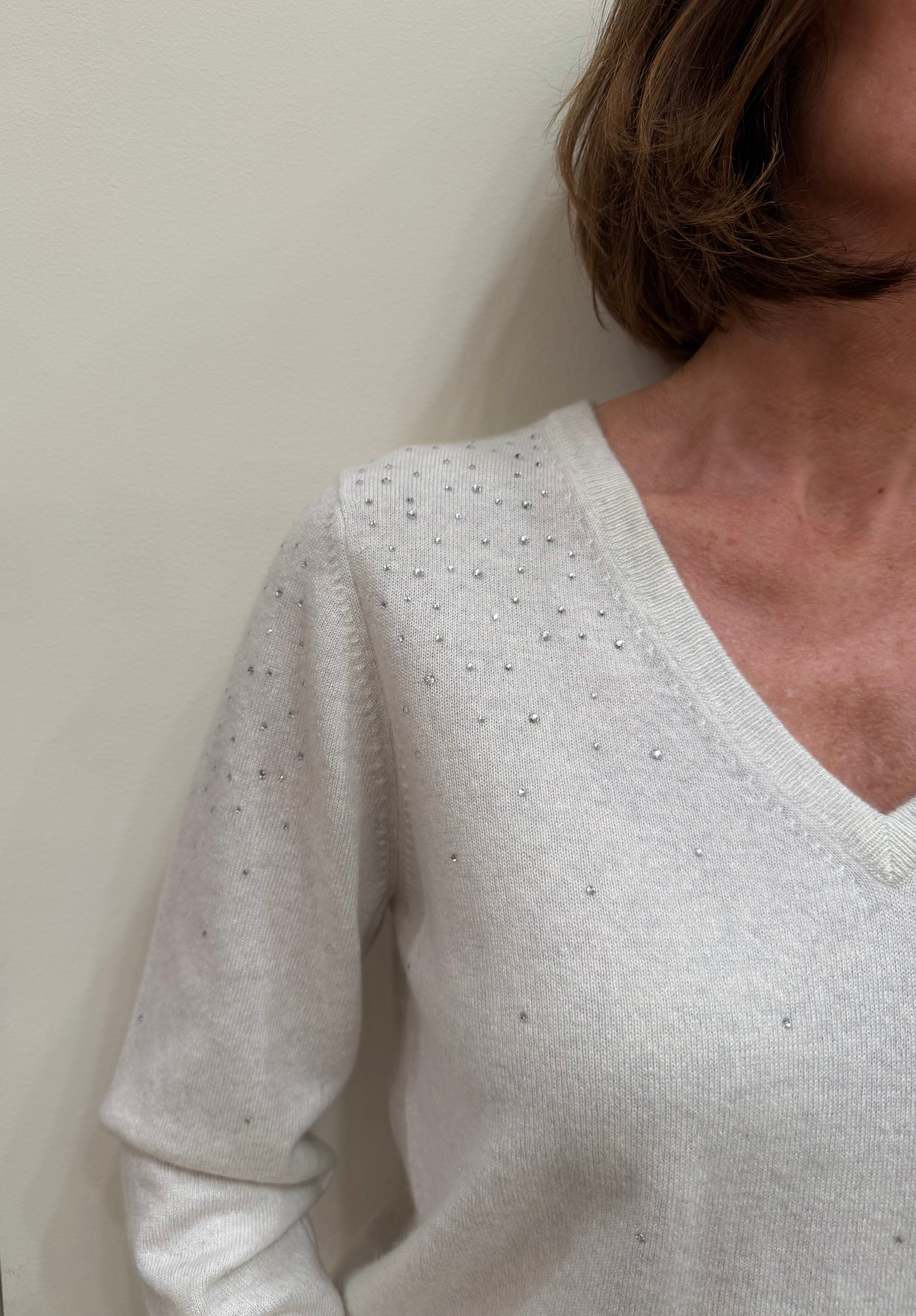Indulge in the exquisite charm of Crystal Vee, where elegance meets unparalleled craftsmanship. This stunning piece embodies sophistication, crafted from superior quality Kinross Cashmere, renowned for its soft texture and luxurious feel. Each stitch reflects a commitment to excellence, making it a timeless addition to your wardrobe. Elevate your style with the ultimate in luxury and comfort that only Kinross Cashmere can provide. Discover the perfect blend of refinement and versatility with Crystal Vee.