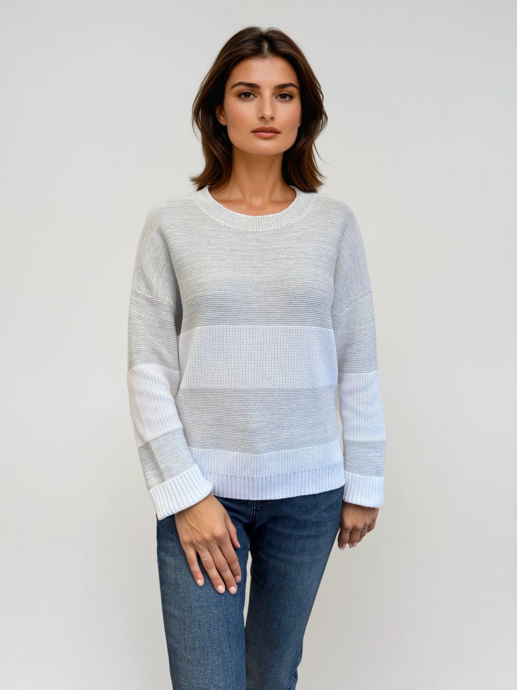 Indulge in the timeless elegance of the Lurex Stripe Crew, a masterpiece crafted from the superior quality of Kinross Cashmere. This exquisite piece seamlessly blends sophistication with modern flair, featuring a delicate lurex stripe that adds a subtle shimmer to your look.