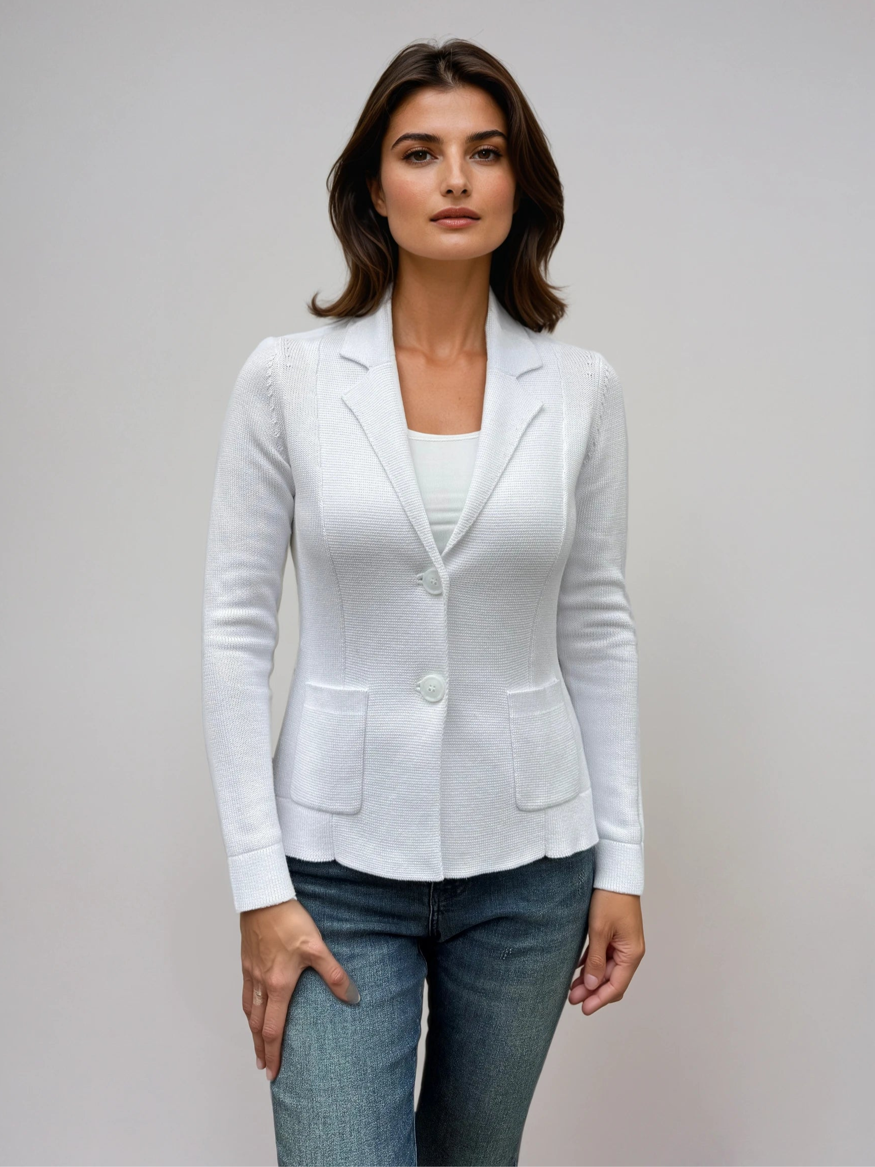 Designed with a tailored fit and a sophisticated notch collar, this cardigan effortlessly combines comfort with style. Whether layered over a refined blouse or styled with your favourite denim, its versatility ensures you look chic in any setting.
