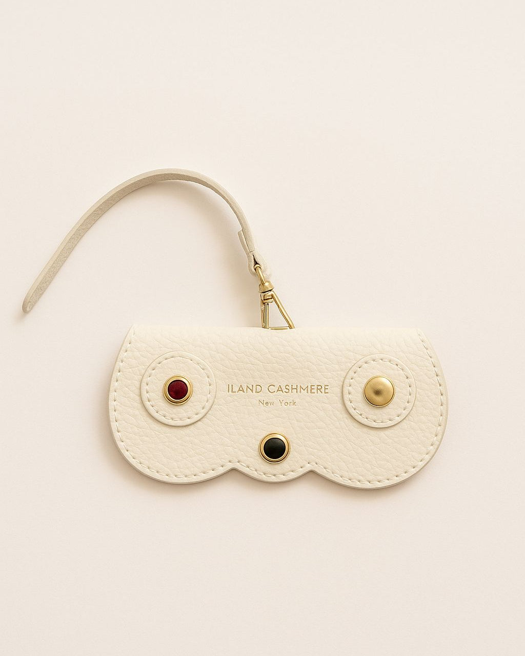 Handcrafted in Italy from supple pebbled leather, our Island Cashmere Eyeglass Case brings understated elegance to everyday life. Designed to attach effortlessly to any handbag, it keeps your sunglasses or readers stylishly protected and always within reach. The curved silhouette, gold-tone hardware, and subtle Island Cashmere logo lend a refined finish to this timeless accessory — a perfect blend of beauty and function for those who appreciate quiet luxury
