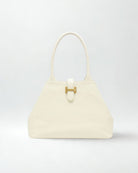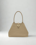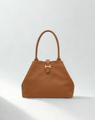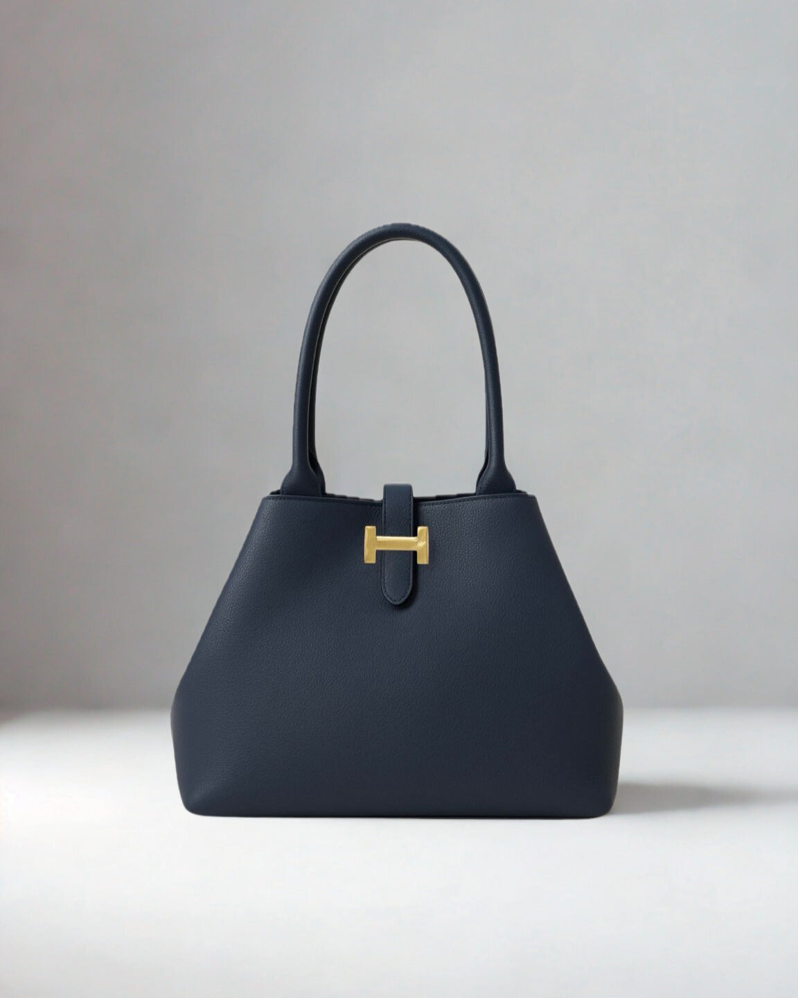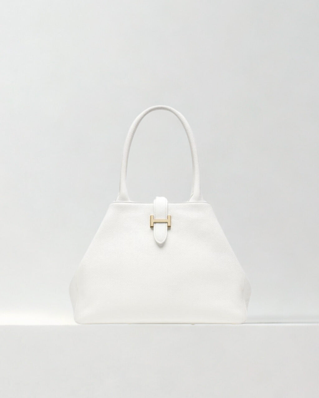 Crafted from supple pebbled leather, this tote is designed with clean lines and a refined silhouette. The long double handles are sized to be worn comfortably on the shoulder, while the signature metallic clasp adds a polished finish. A sophisticated and versatile piece that’s the perfect size for traveling and can easily fit a laptop.