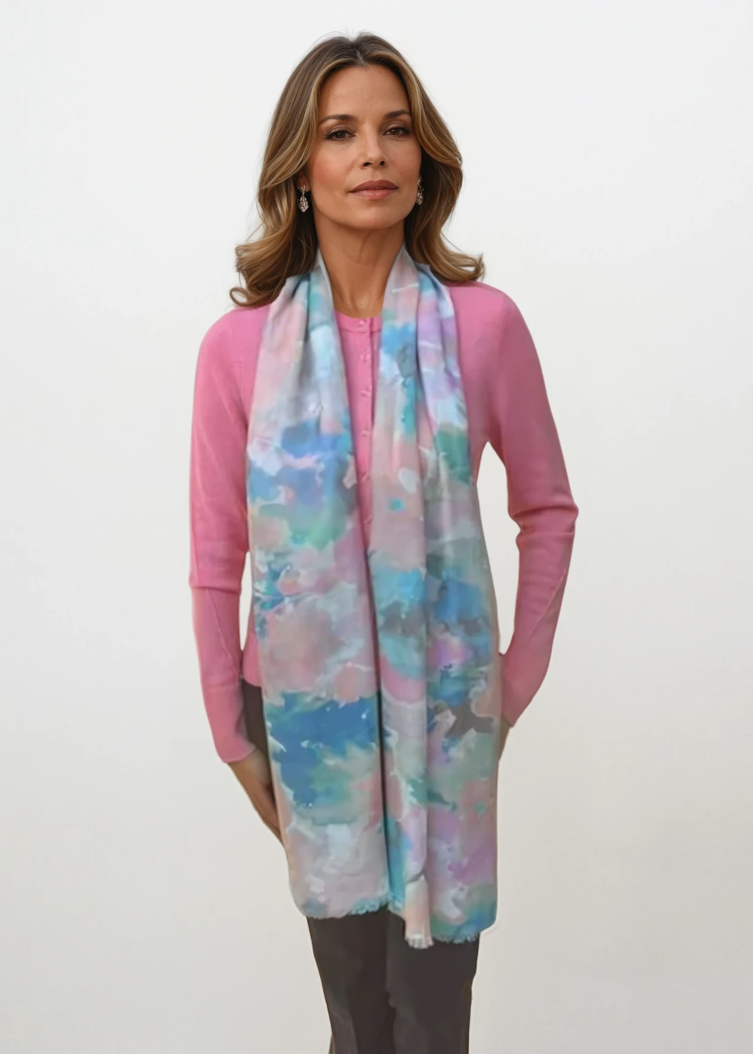 Indulge in the unparalleled softness and exquisite beauty of the Maldives Floral Print Scarf, a luxurious accessory woven from a premium blend of 50% wool, 25% silk, and 25% cashmere. Its vibrant, elegant floral print offers effortless versatility, instantly elevating any ensemble—whether draped lightly over a cocktail dress or styled as a refined accent with knitwear. Experience the delicate comfort of this one-size piece, designed to be a timeless statement of sophisticated style and graceful charm.
