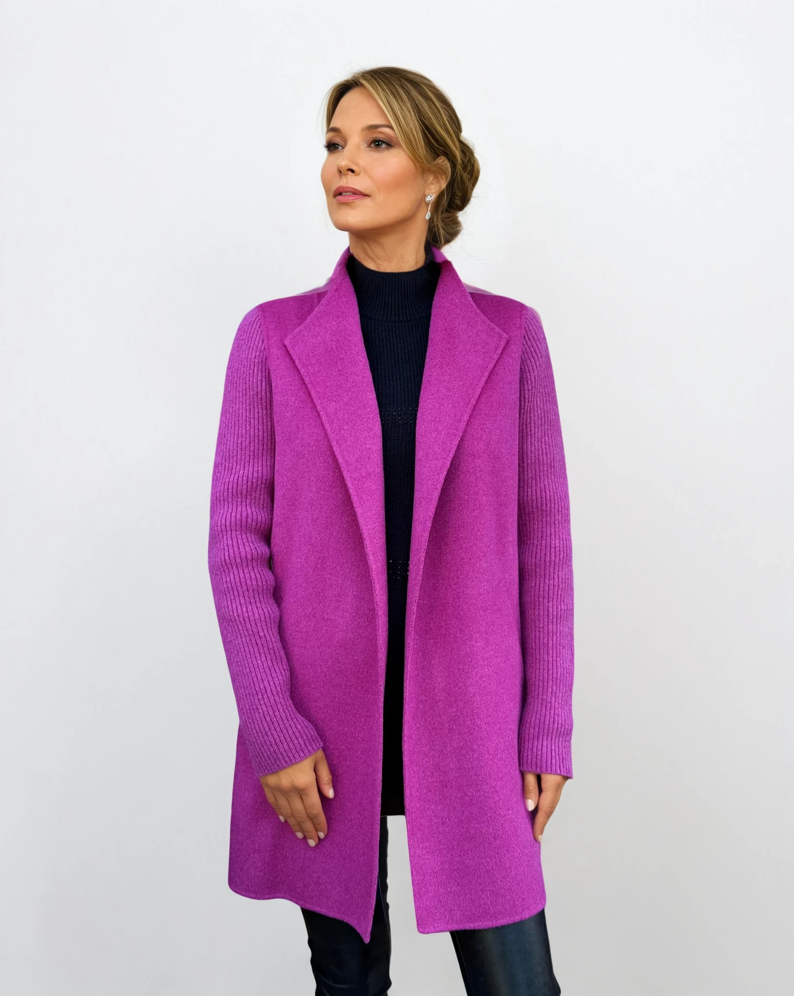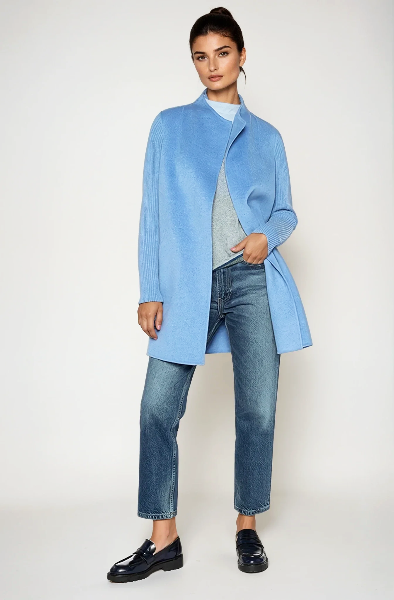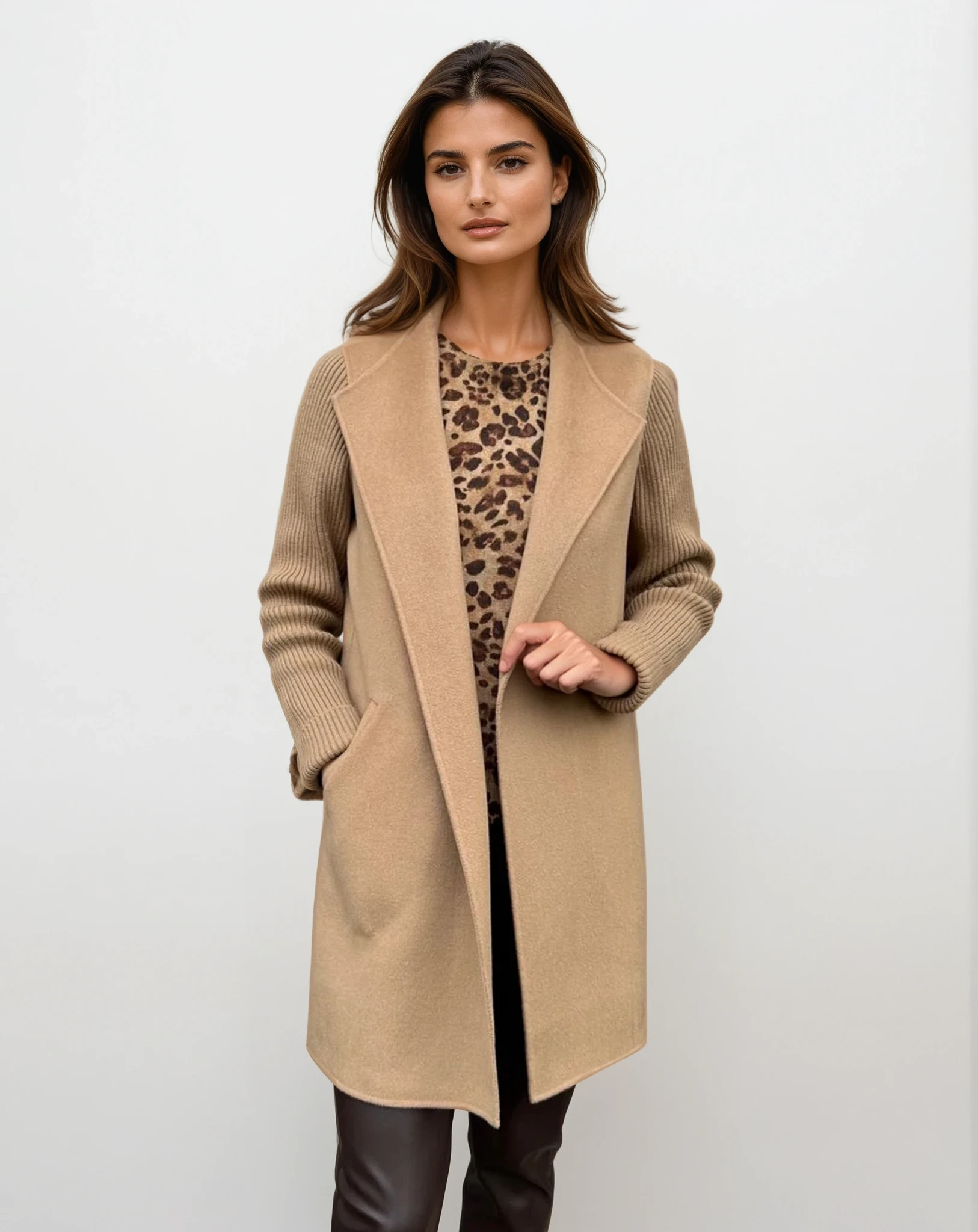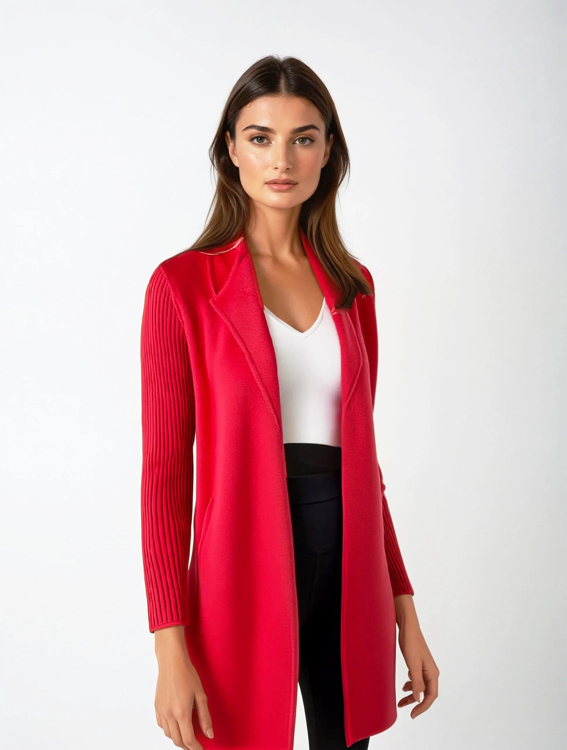 Experience the unparalleled allure of cashmere with the Rib Sleeve Coat, where luxury meets effortless chic.