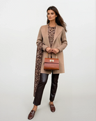 The unique ribbed sleeves add a touch of sophistication, while the soft, sumptuous fabric envelops you in warmth. Perfect for layering over your favourite outfits, this piece is a statement of timeless style and refined taste, ideal for both casual outings and formal occasions.