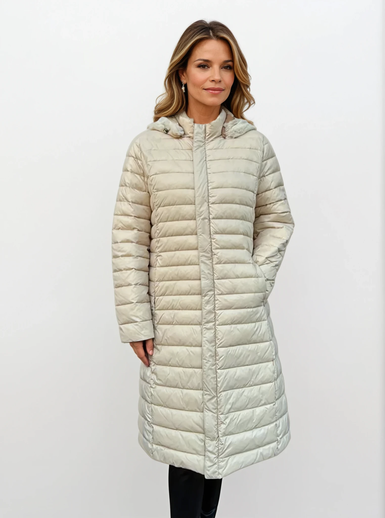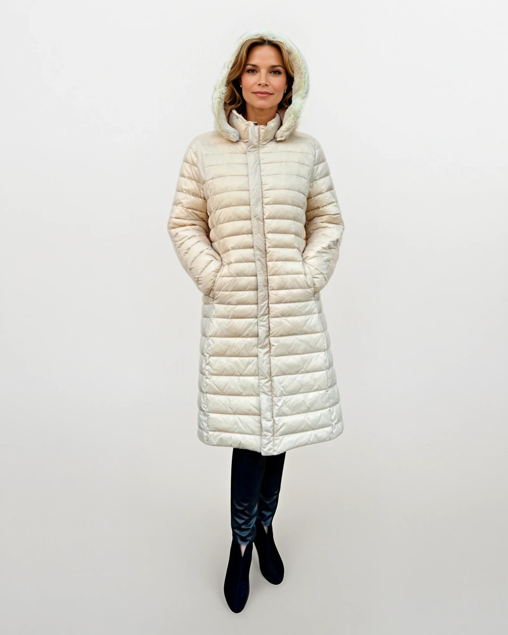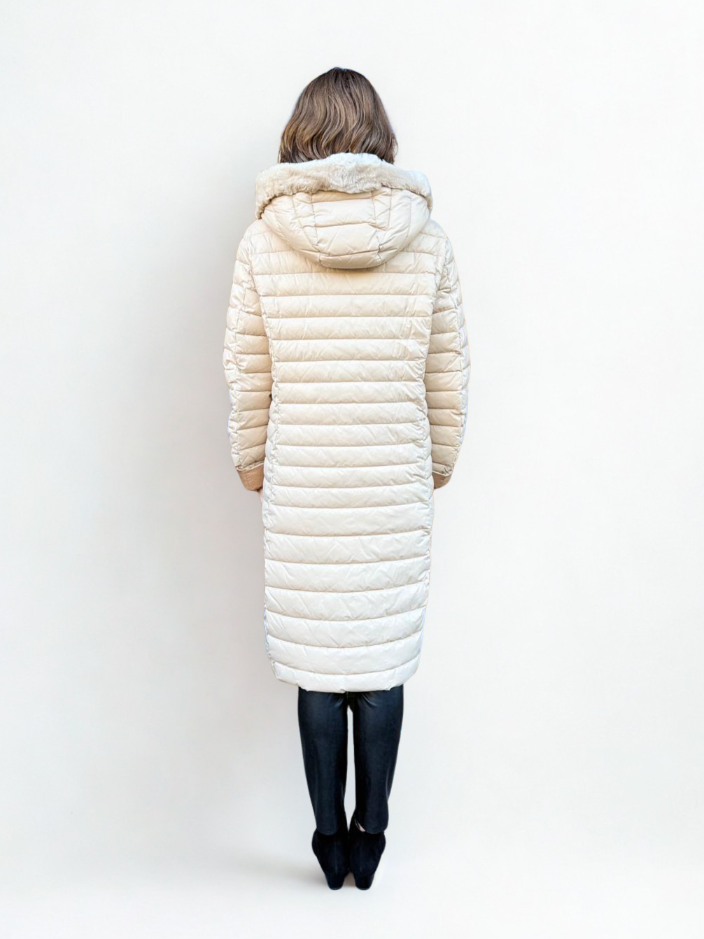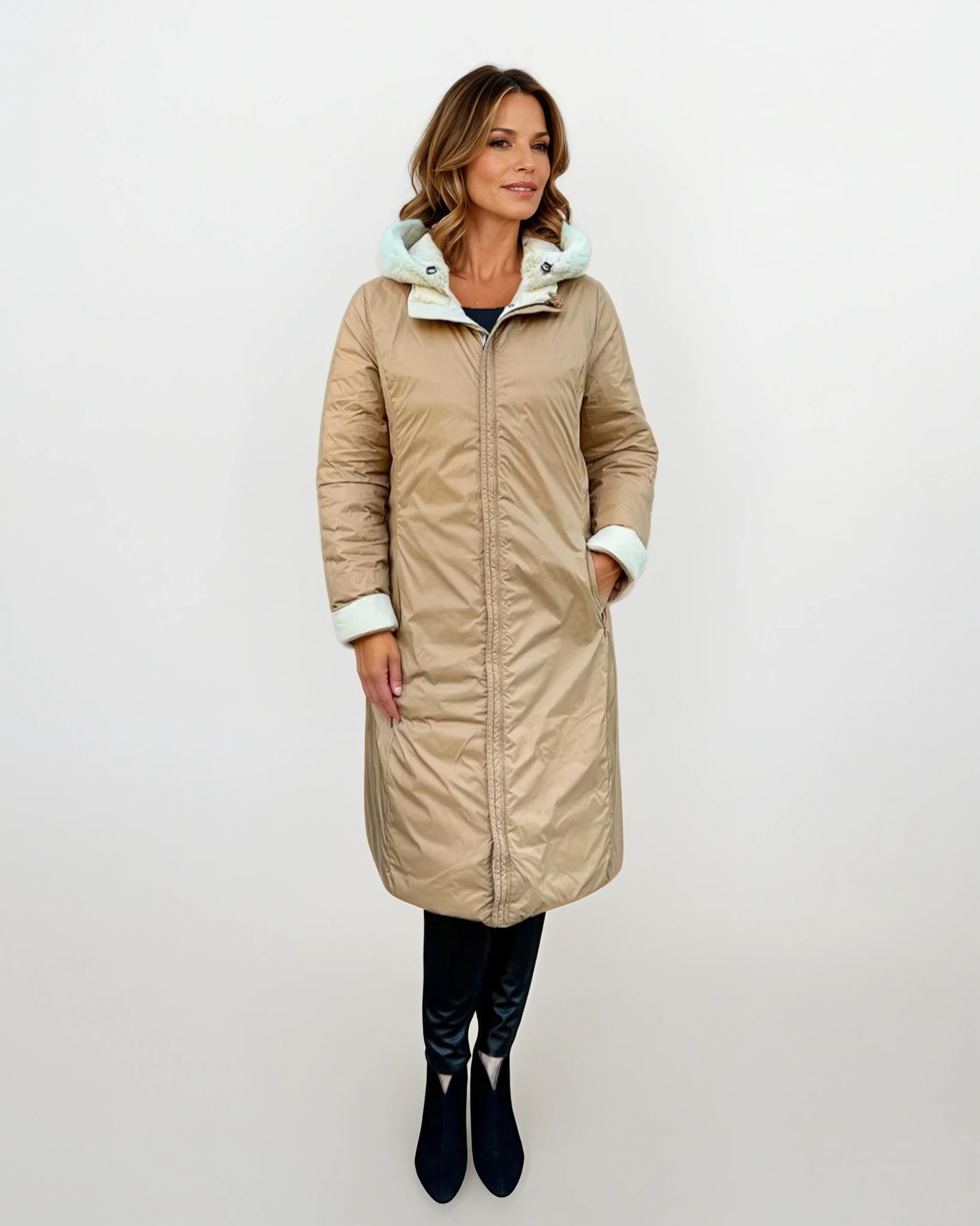 A chic and versatile essential for the colder months, this reversible field coat combines style with practicality. Crafted in durable polyester with plush rex rabbit fur trimming the hood, it offers both luxury and warmth. Designed with pockets on both sides and a sleek, tailored silhouette, it’s perfect for travel, city strolls, or crisp winter days. Switch between two looks in one coat—effortless elegance, no matter the occasion.