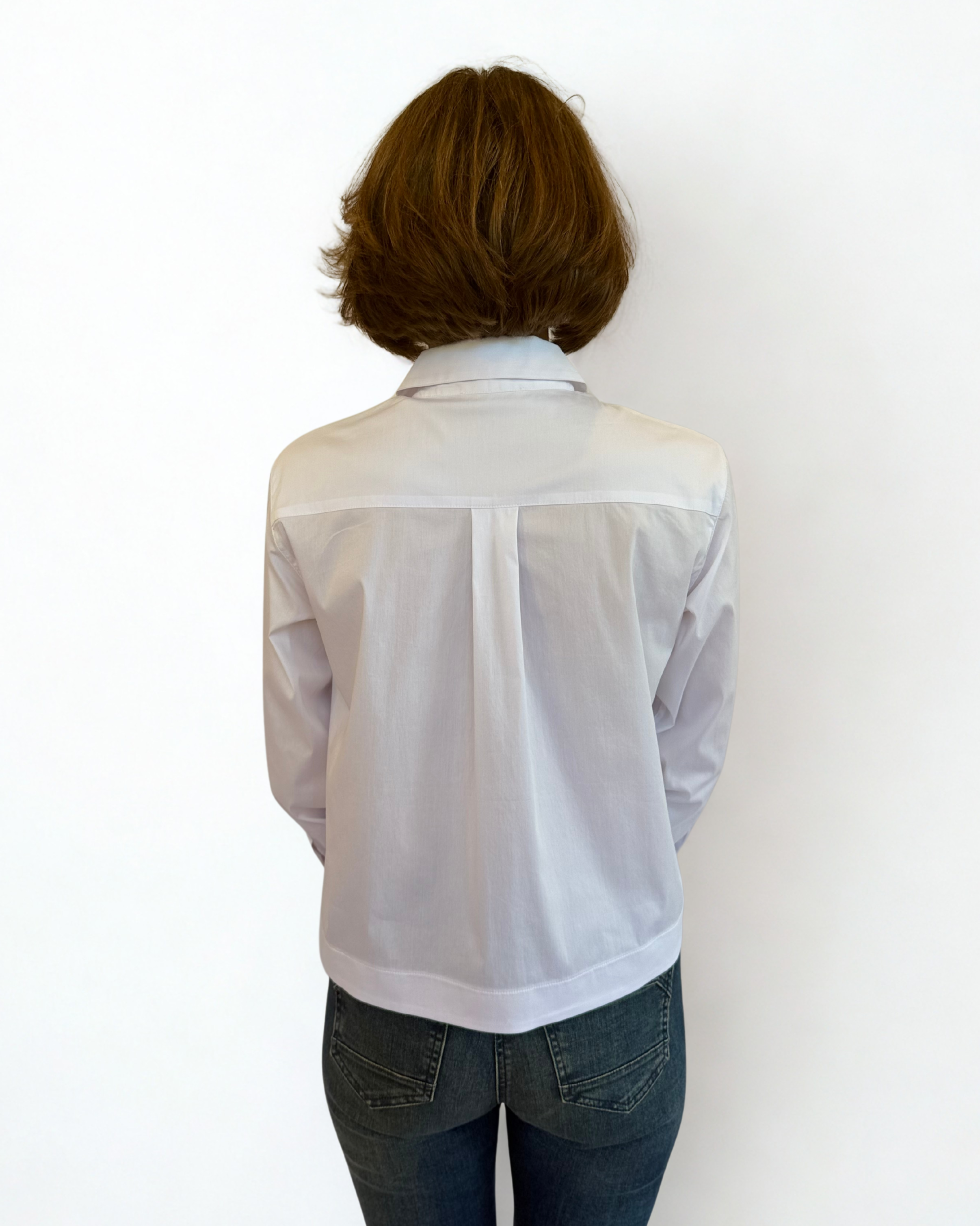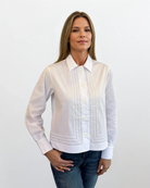 A crisp tailored shirt with refined pintuck detailing that adds subtle texture and structure. Perfect for elevating everyday looks or pairing with tailored pieces for a polished ensemble.