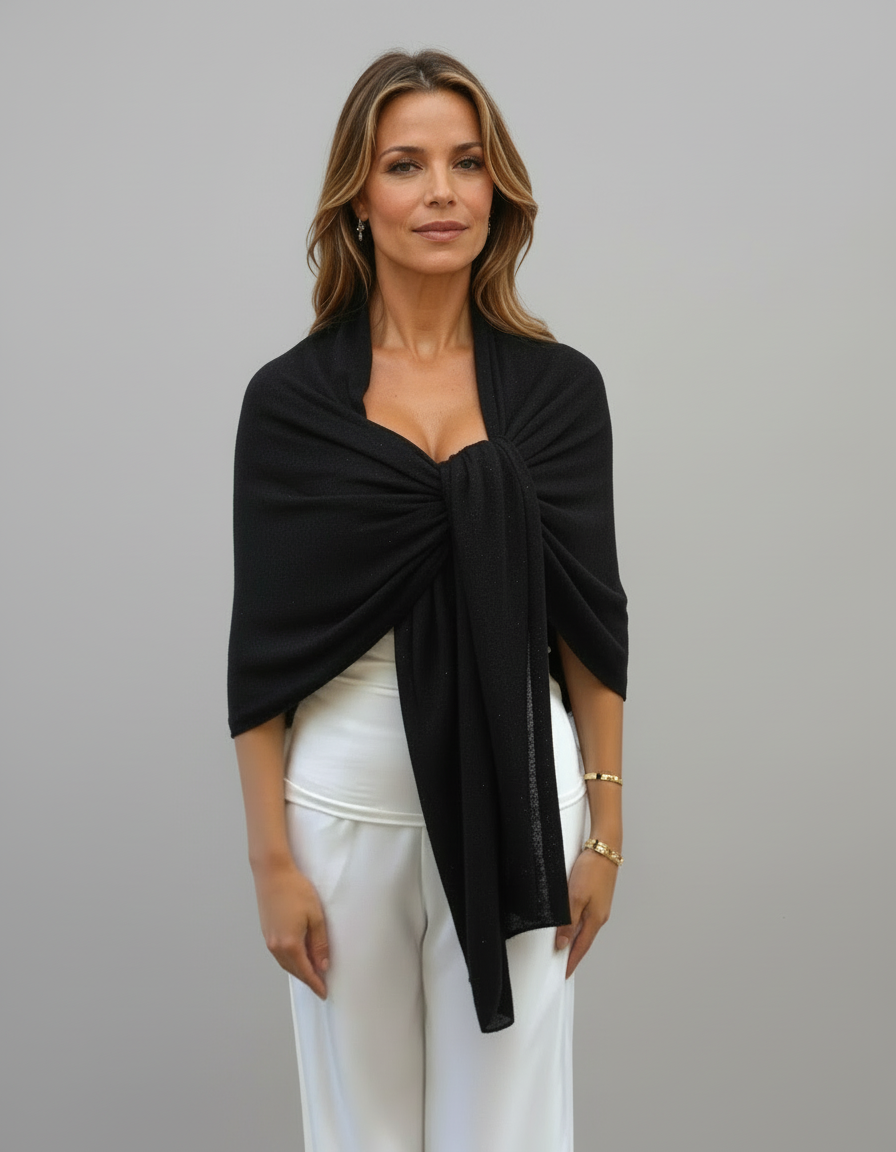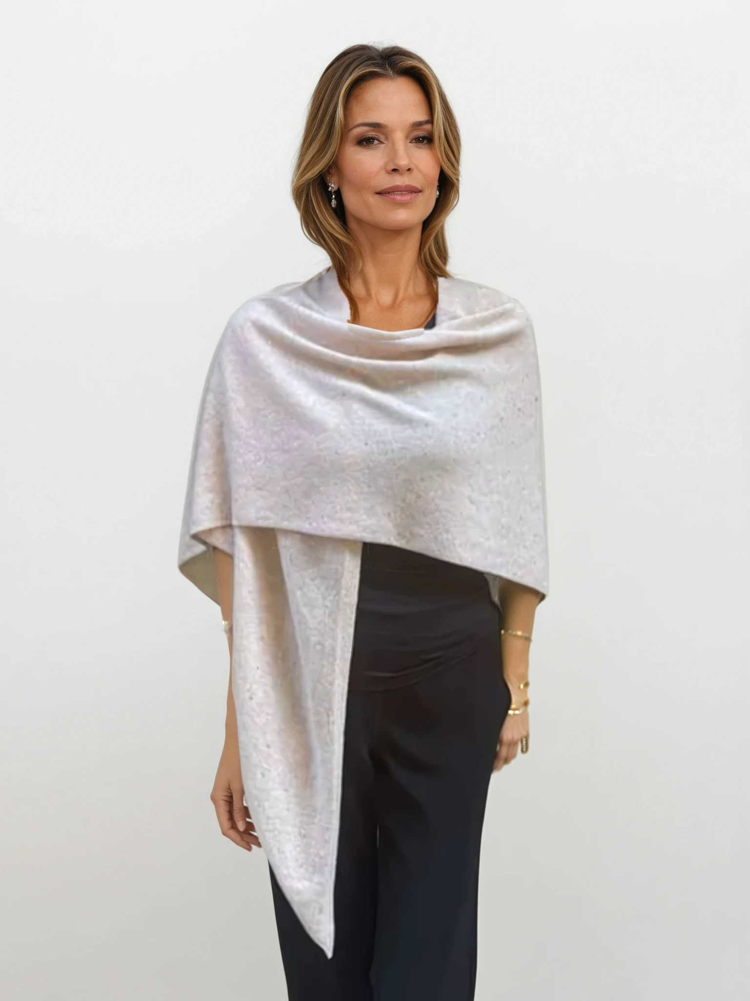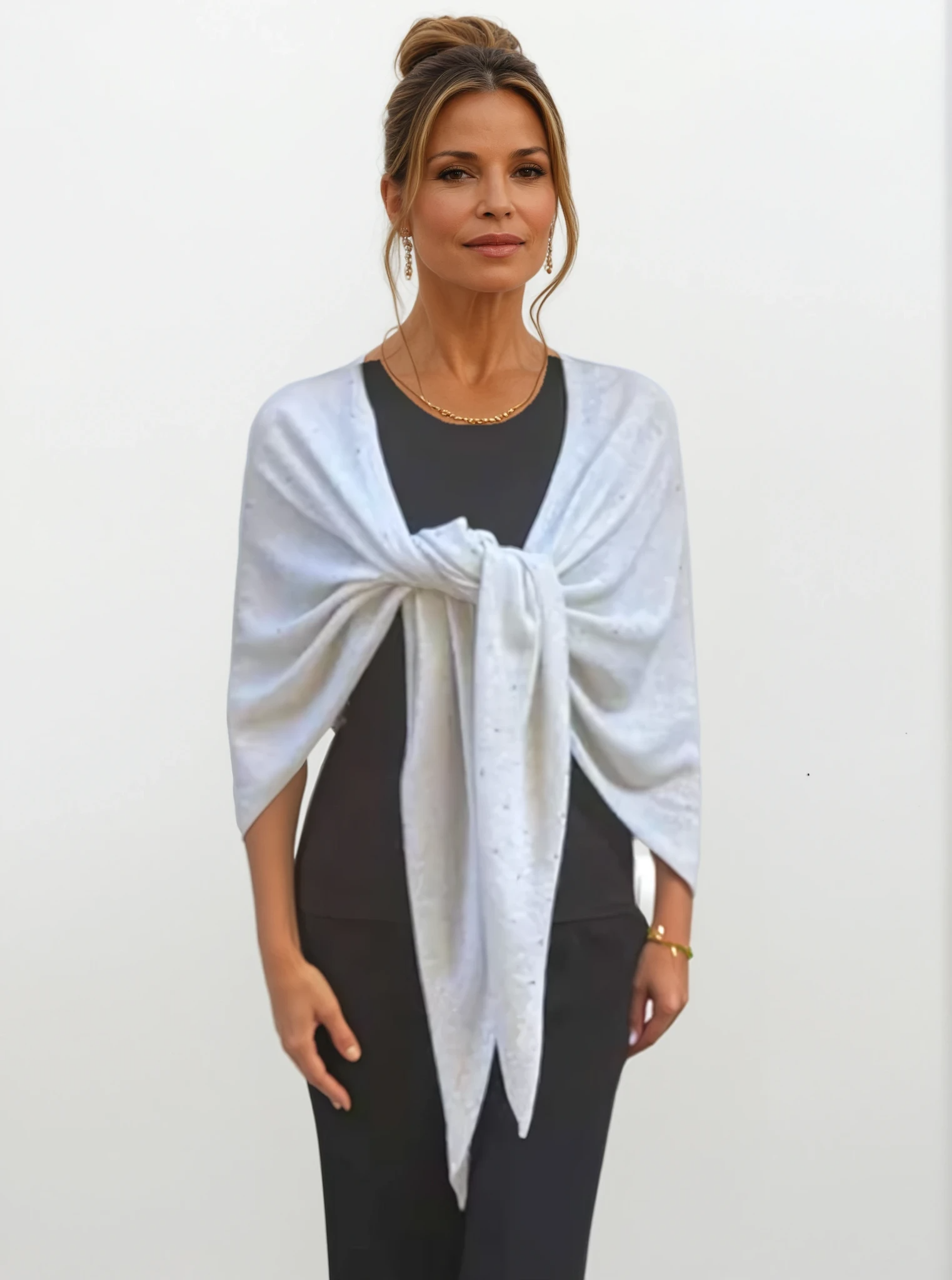 Indulge in the unparalleled luxury of the CRYSTAL TRIANGLE WRAP, an exquisite cashmere shawl designed for timeless elegance and versatile styling. Crafted from sumptuously soft 100% Cashmere, this wrap drapes beautifully over any outfit, offering a lightweight layer of warmth and sophistication. Its one-size-fits-all design ensures effortless beauty, making this essential piece the perfect accessory for adding a touch of refined luxury to your wardrobe. Elevate your look with this elegant, soft cashmere wrap—the ultimate statement in effortless grace.