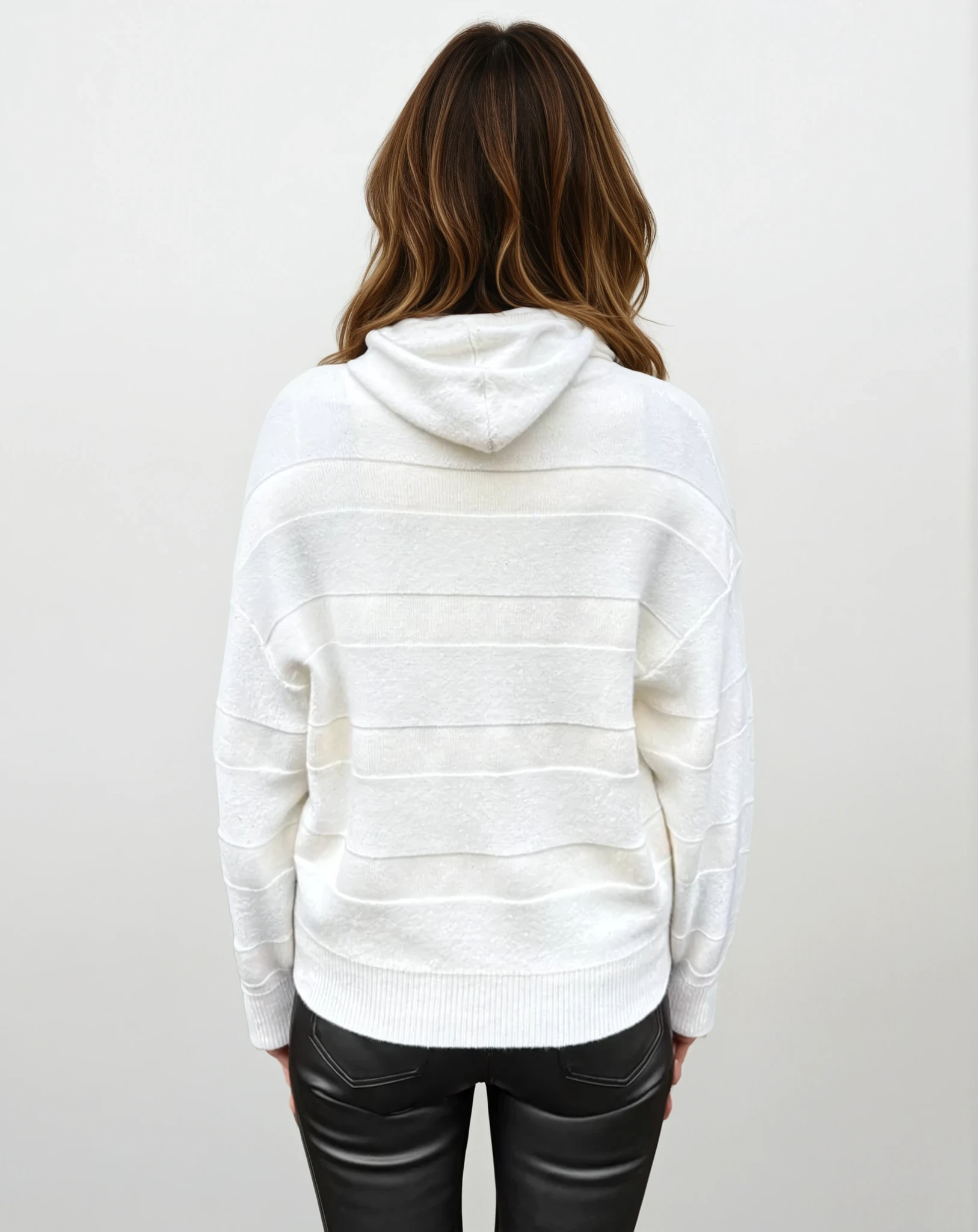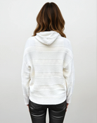 - Style: Hooded pullover sweater with tonal horizontal stripe detail