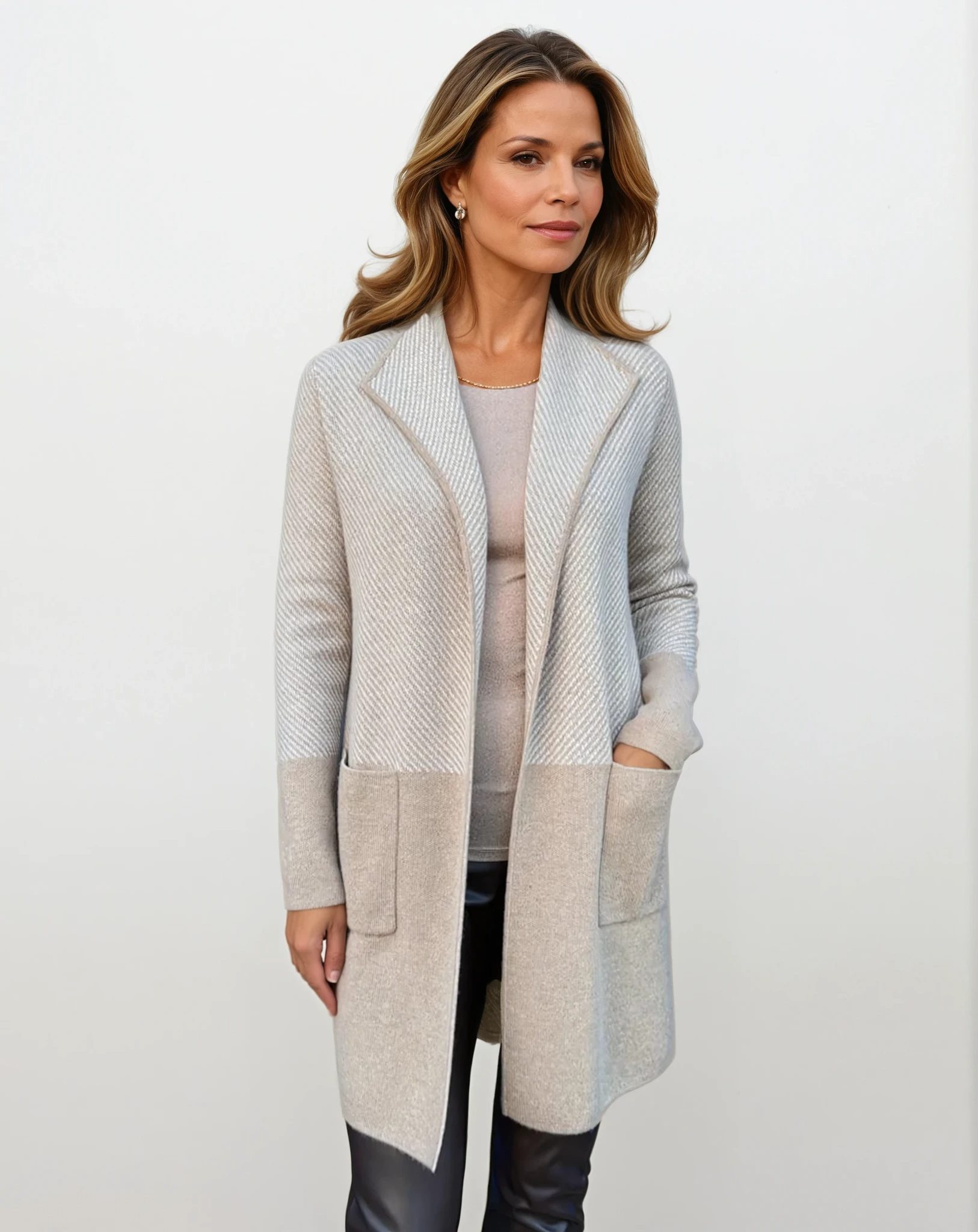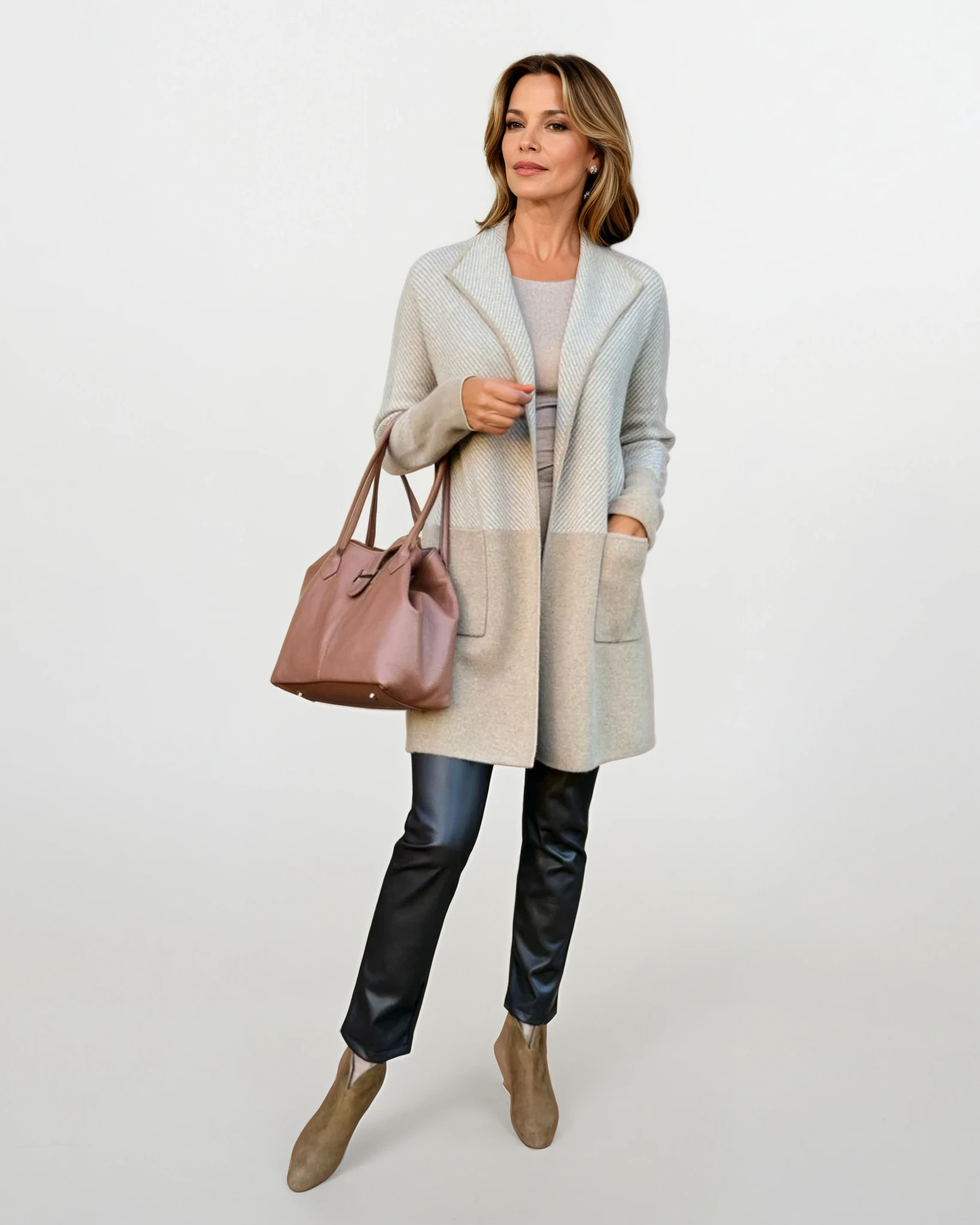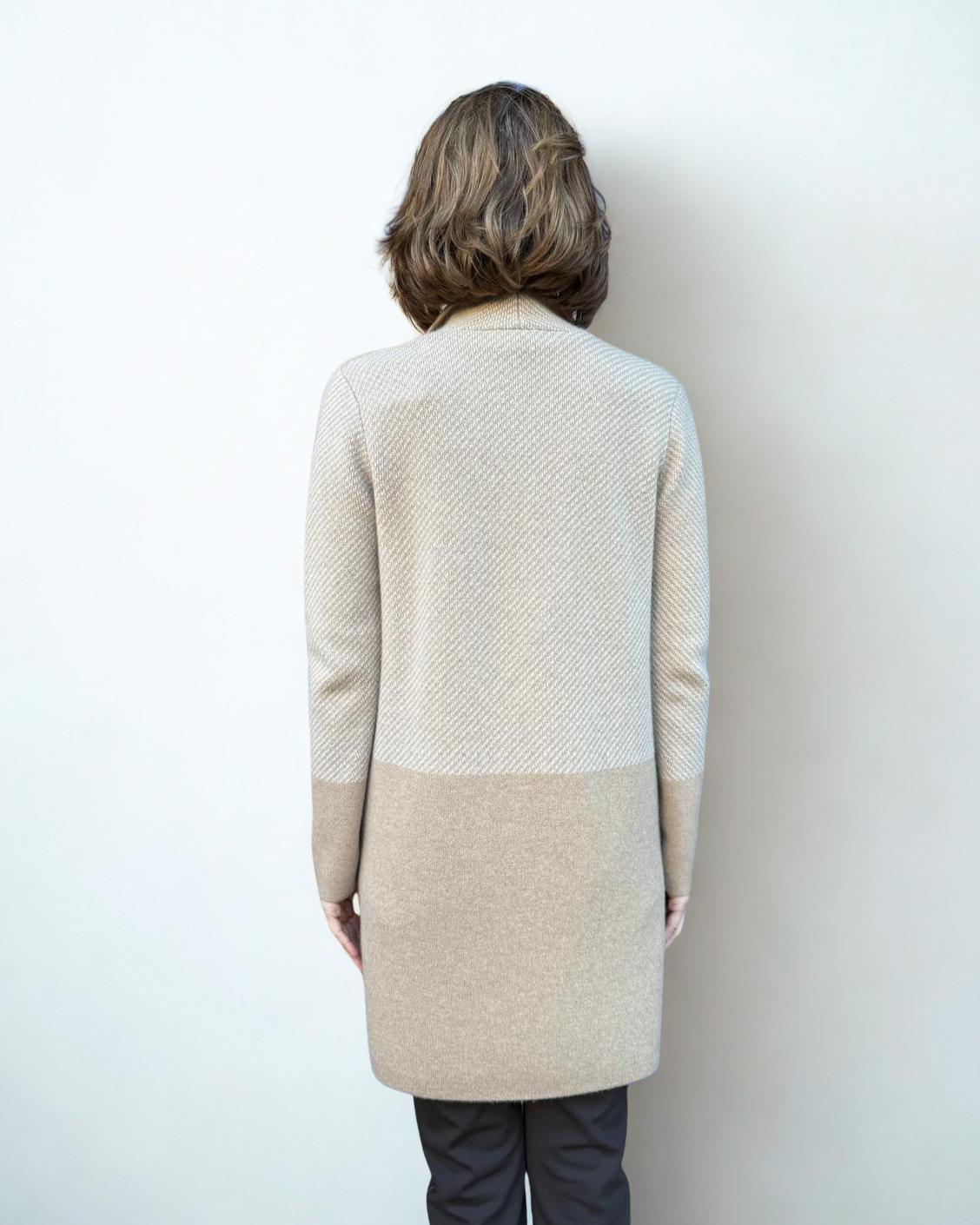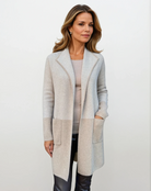 Luxuriously soft and effortlessly refined, this 100% cashmere coatigan features a subtle textural contrast, open-front design, and deep patch pockets. With its relaxed silhouette and shawl collar, it drapes beautifully for an elegant layer that transitions seamlessly from day to evening.