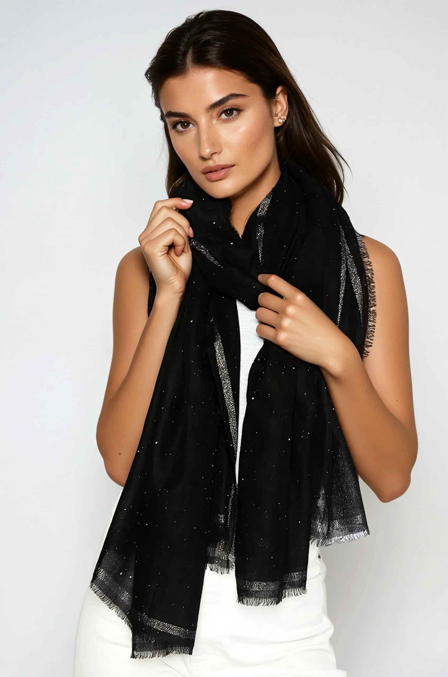 Introducing the Sequin Shawl, an exquisite blend of sophistication and charm. Crafted from the finest materials, this luxurious accessory elevates your outfit with a touch of glamour and allure. The delicate sequins catch the light beautifully, adding a radiant shimmer that transforms any evening ensemble into a captivating statement.