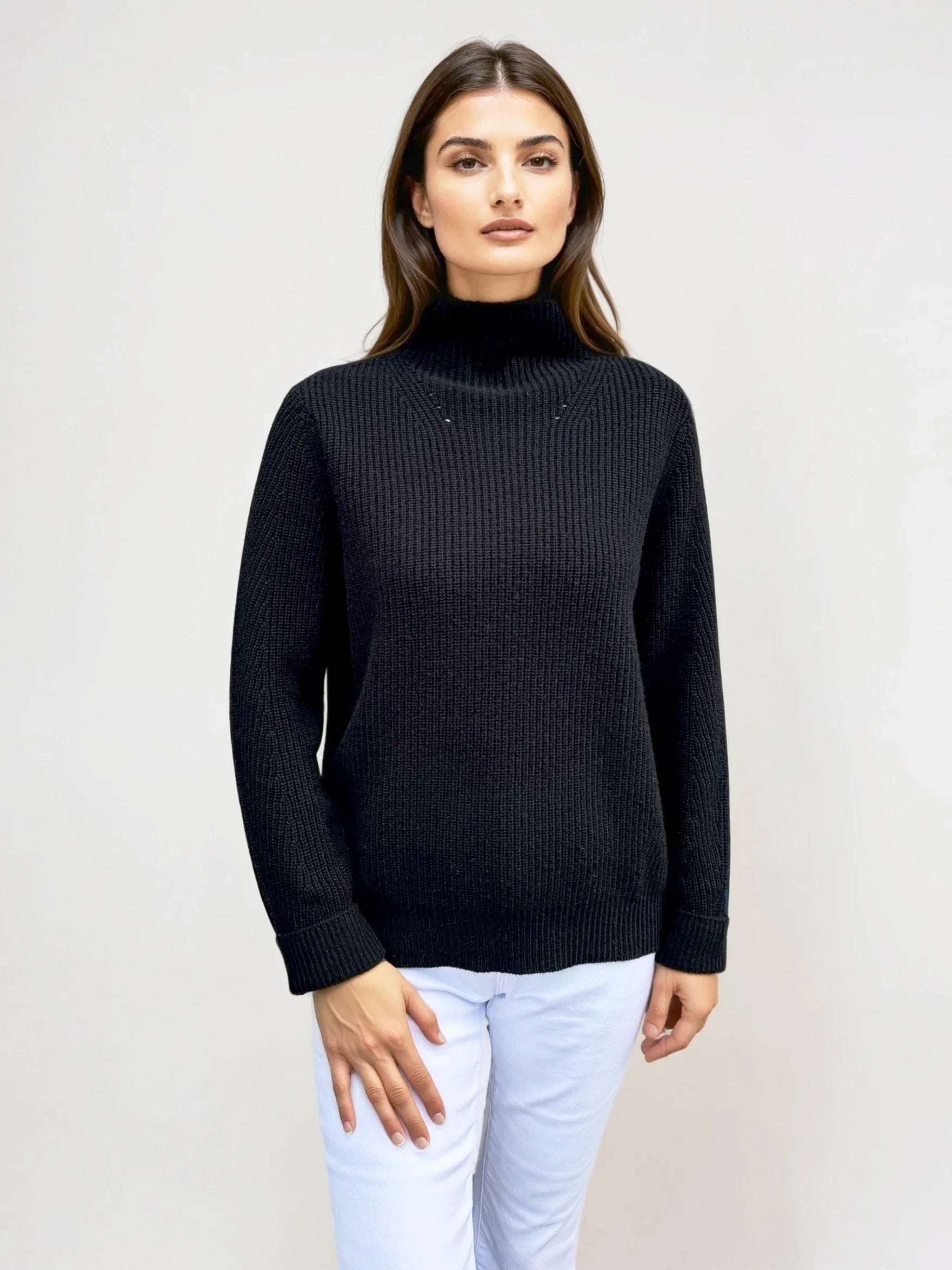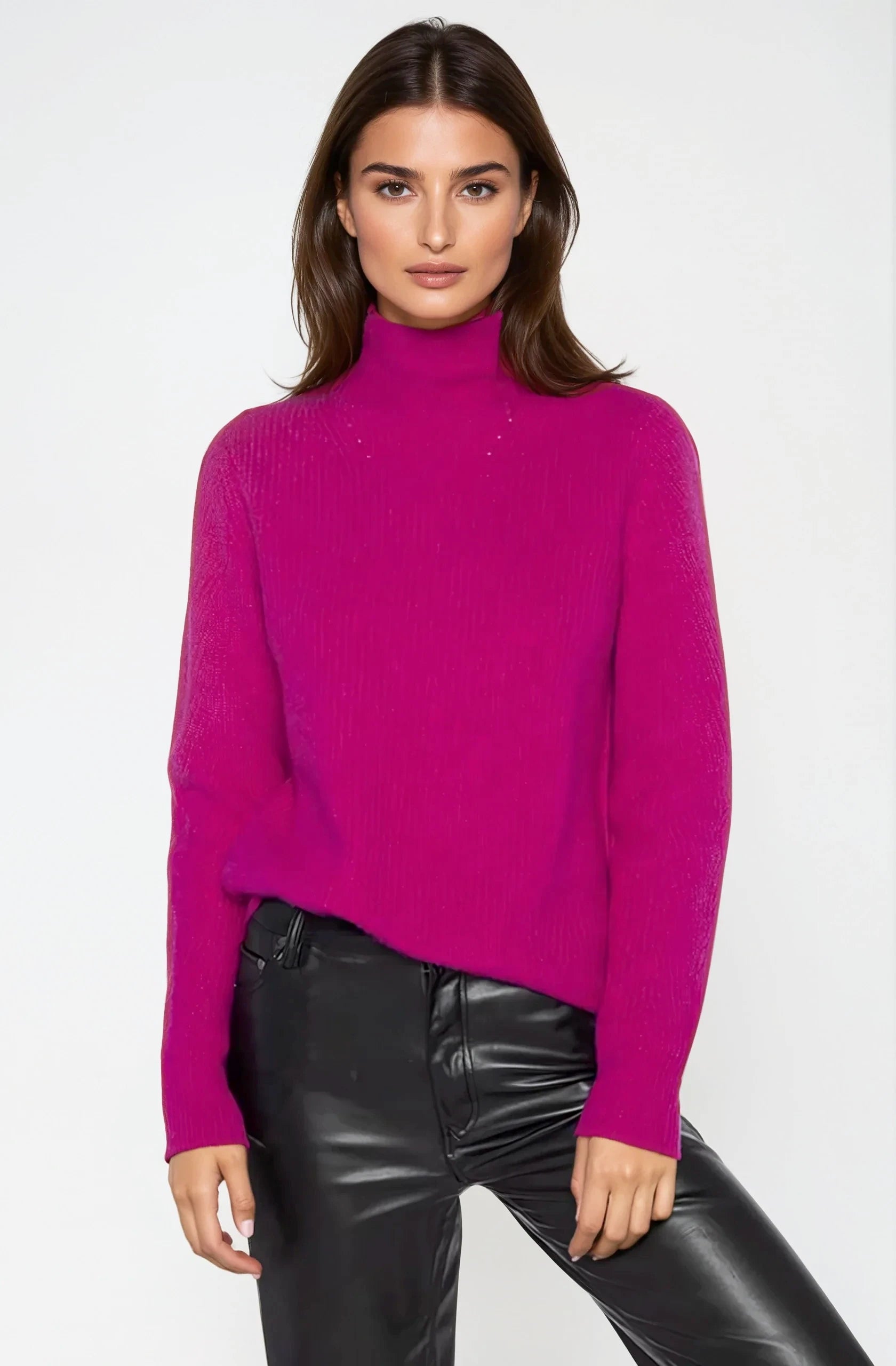 The ribbed design offers a contemporary twist, while the funnel neck provides both warmth and style. Perfect for layering or wearing on its own, this garment elevates any outfit with its soft, sumptuous feel.