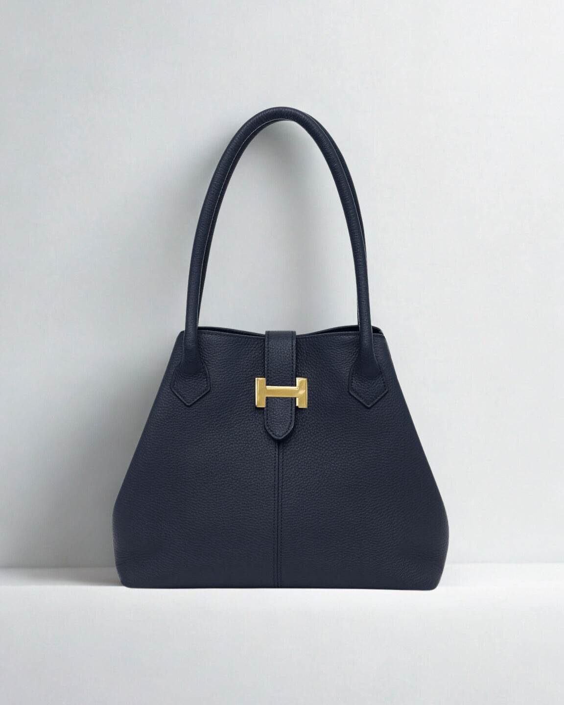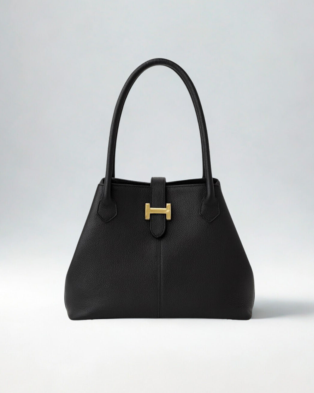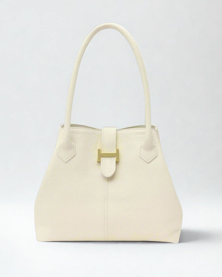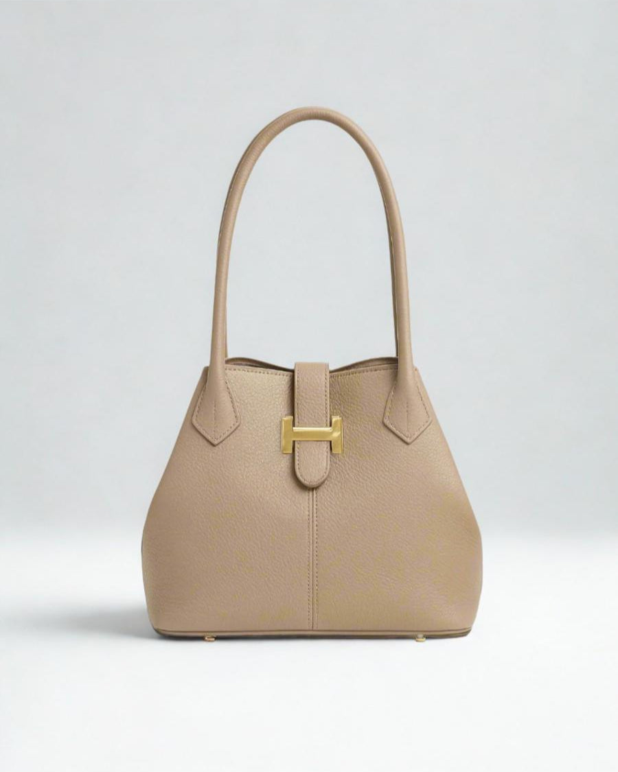 A timeless handbag crafted from supple pebbled leather, designed with clean lines and a structured silhouette. The double top handles provide effortless carrying, while the signature metallic clasp detail adds a refined finishing touch. Spacious yet elegant, it transitions seamlessly from day to evening, making it a versatile staple for any wardrobe.