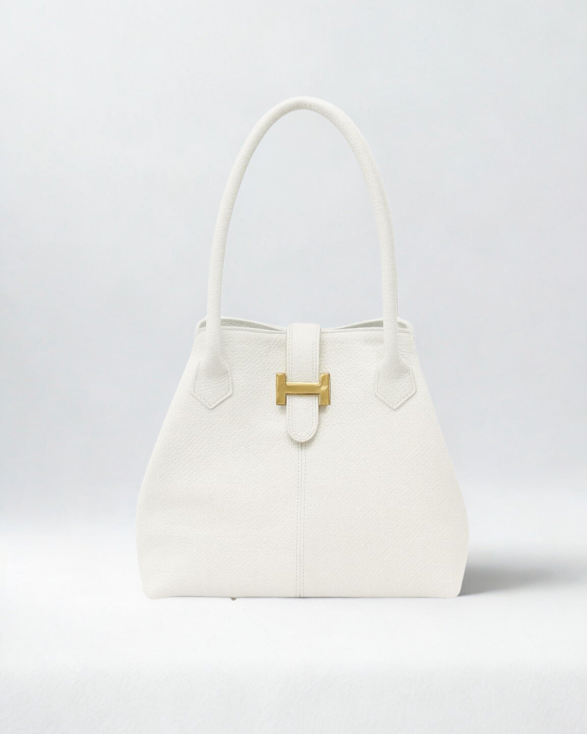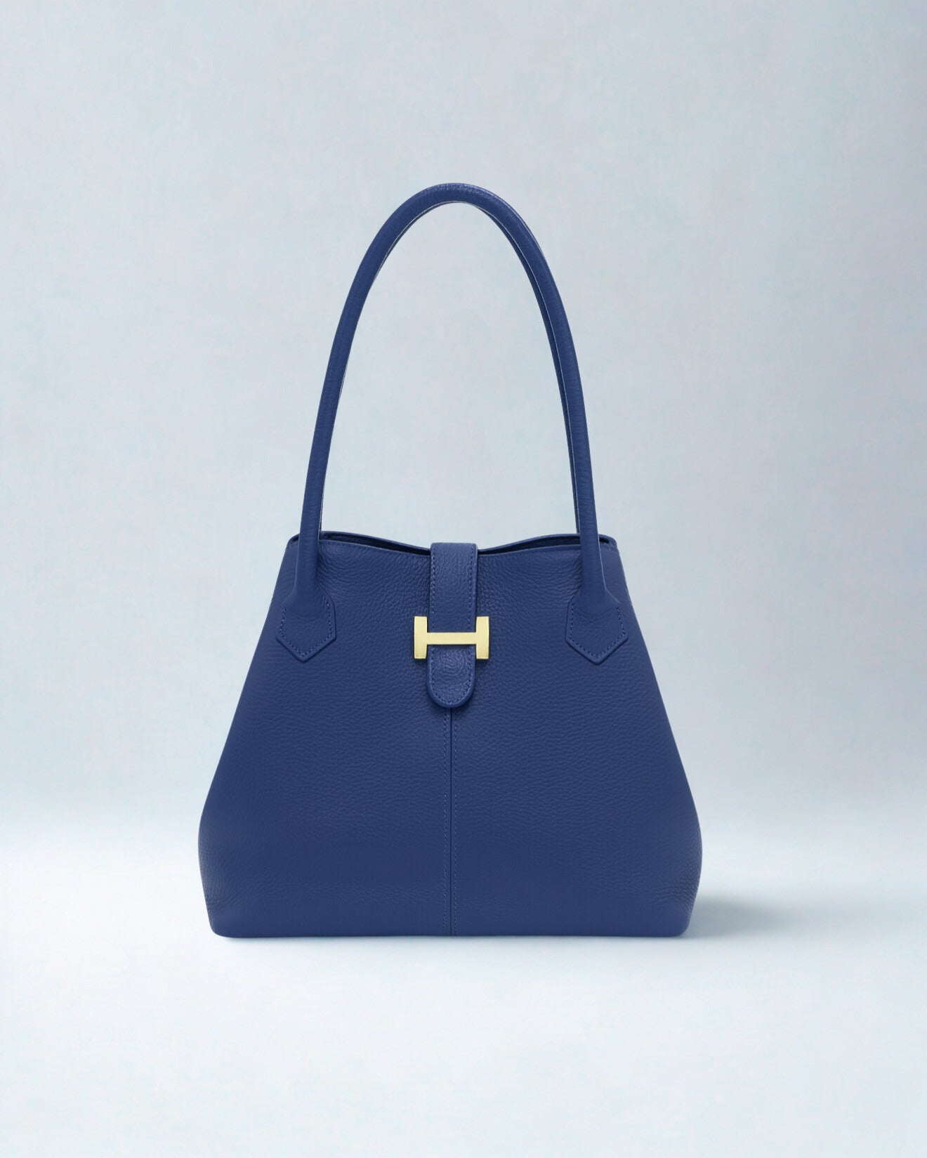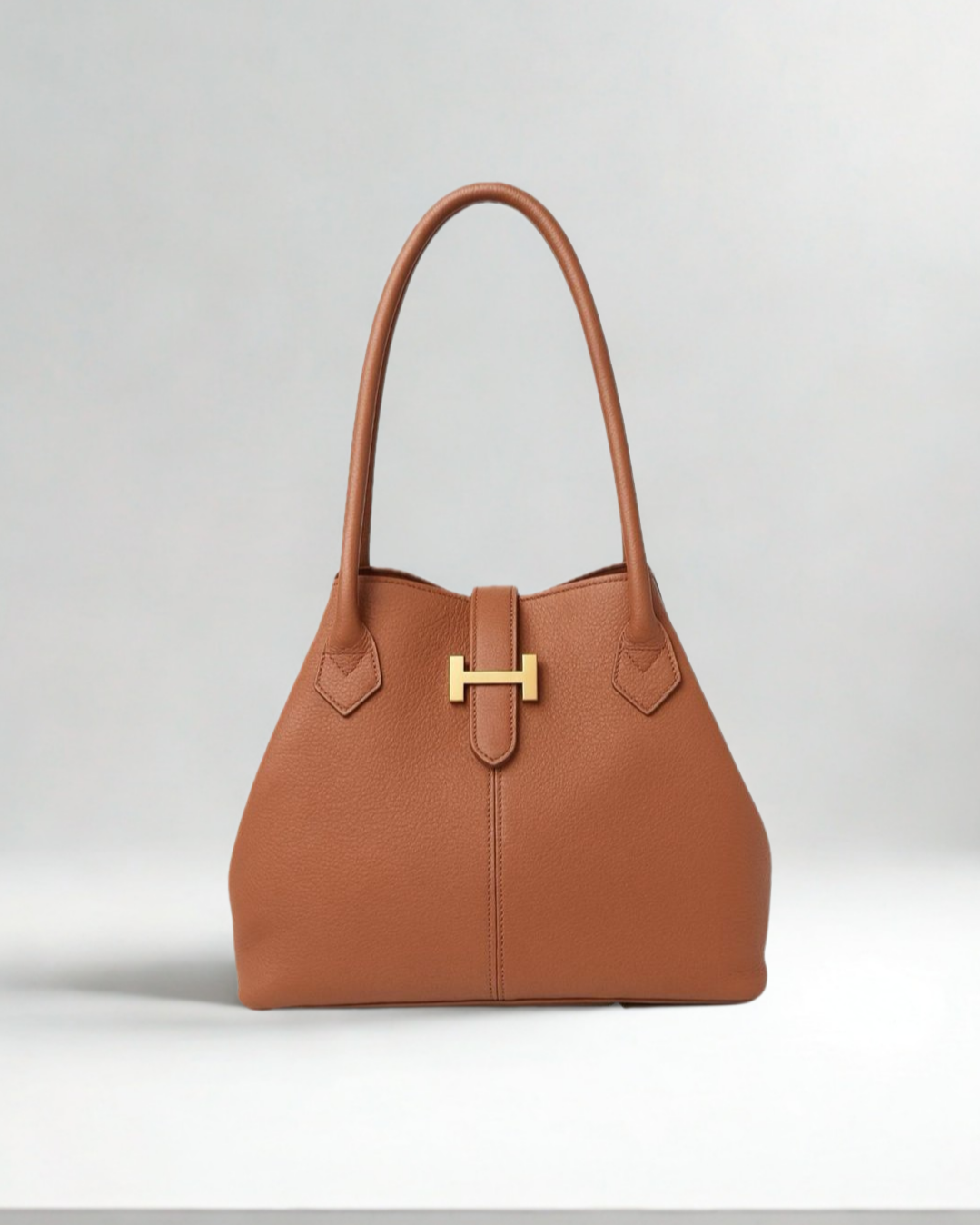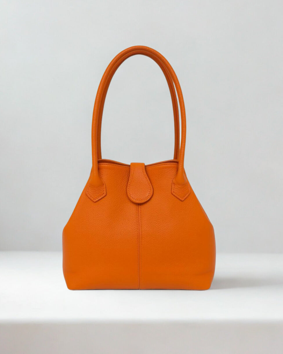 A timeless handbag crafted from supple pebbled leather, designed with clean lines and a structured silhouette. The double top handles provide effortless carrying, while the signature metallic clasp detail adds a refined finishing touch. Spacious yet elegant, it transitions seamlessly from day to evening, making it a versatile staple for any wardrobe.