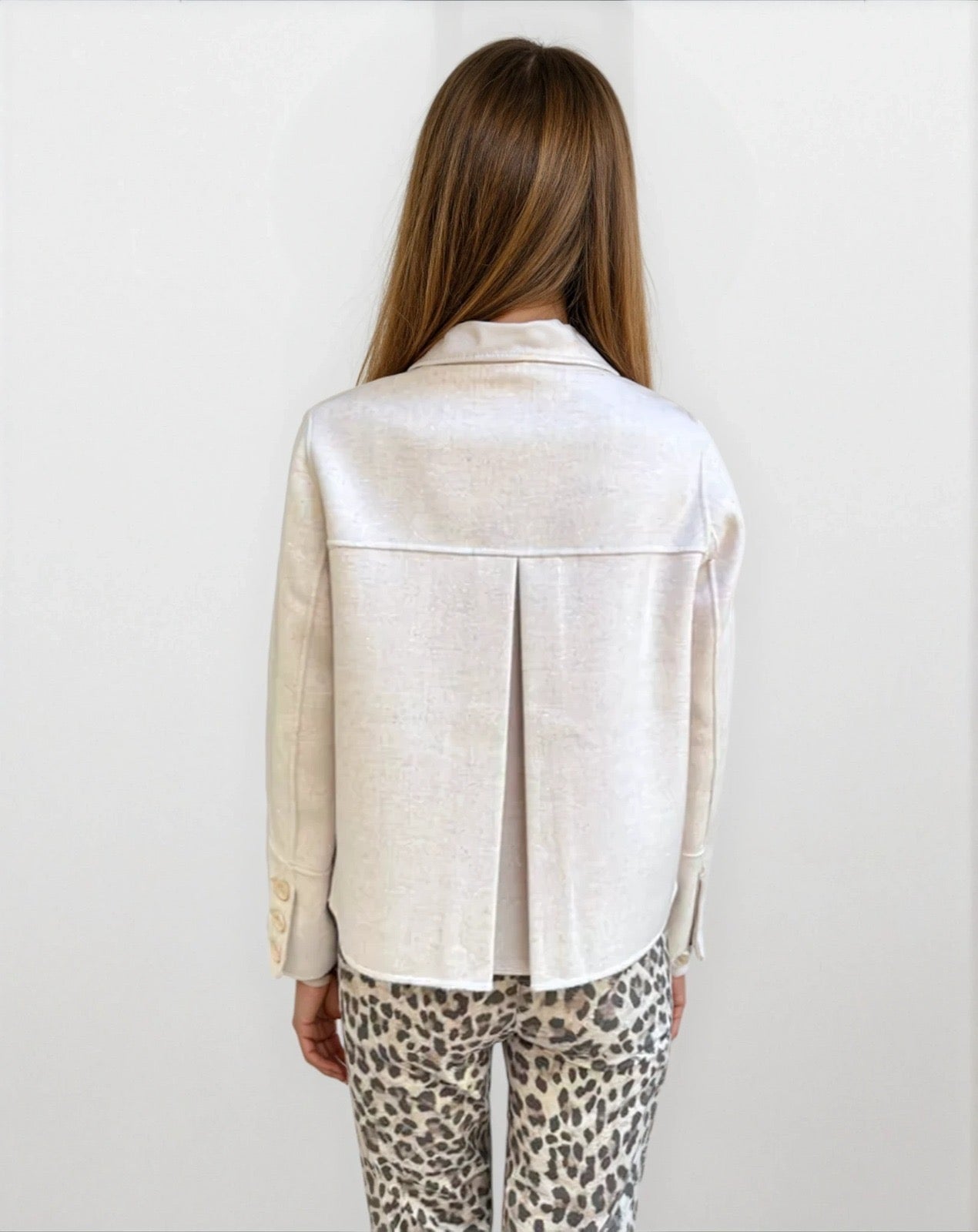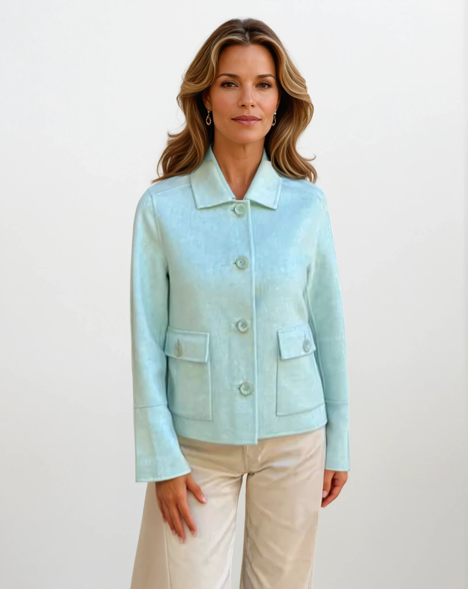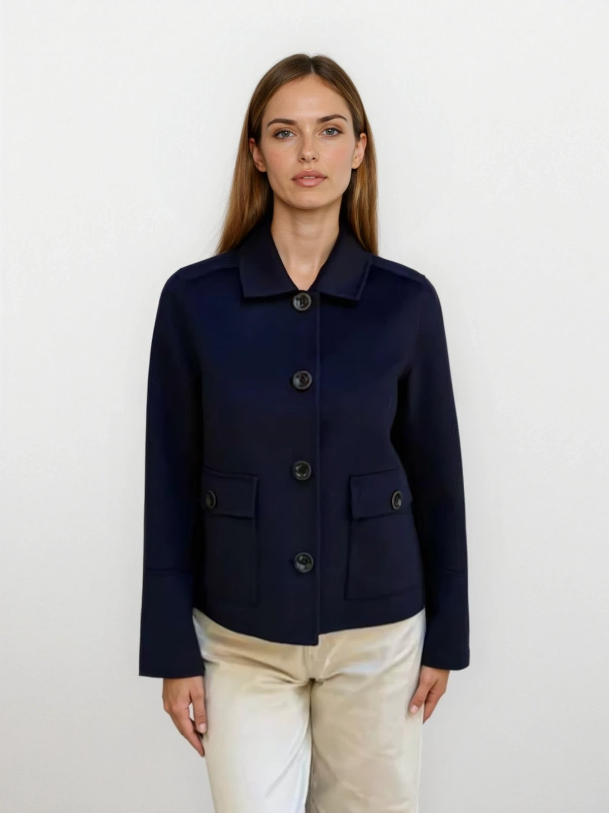 A timeless wool-cashmere jacket designed for effortless elegance and everyday sophistication. Crafted from a luxurious blend of wool and cashmere, this tailored piece offers a soft, structured feel with a refined silhouette. The classic collar, polished buttons, and clean lines make it a versatile essential—perfect for elevating casual looks or completing a polished wardrobe. Whether styled with tailored trousers or worn casually with denim, this jacket delivers understated luxury, comfort, and modern femininity in every detail. ⸻