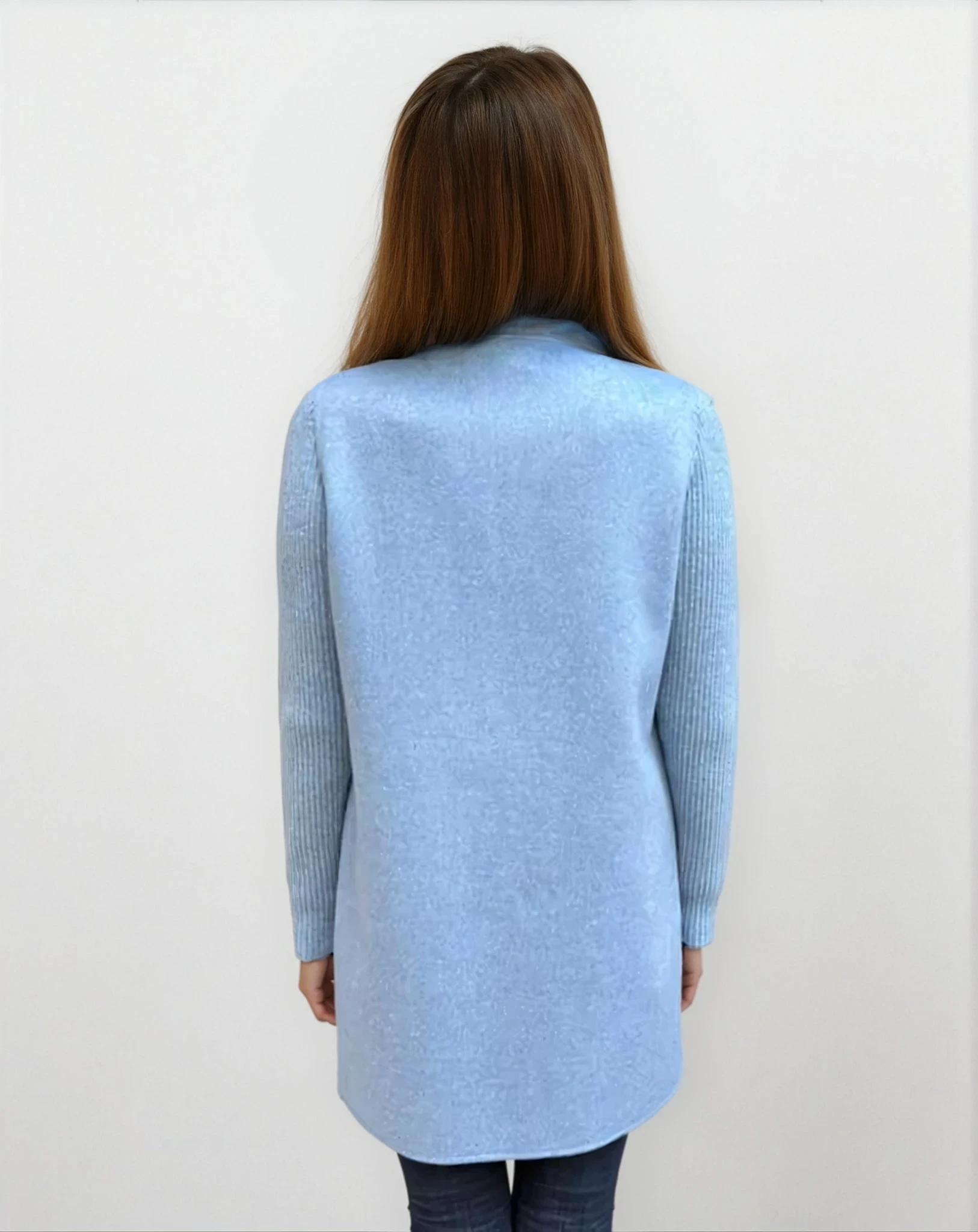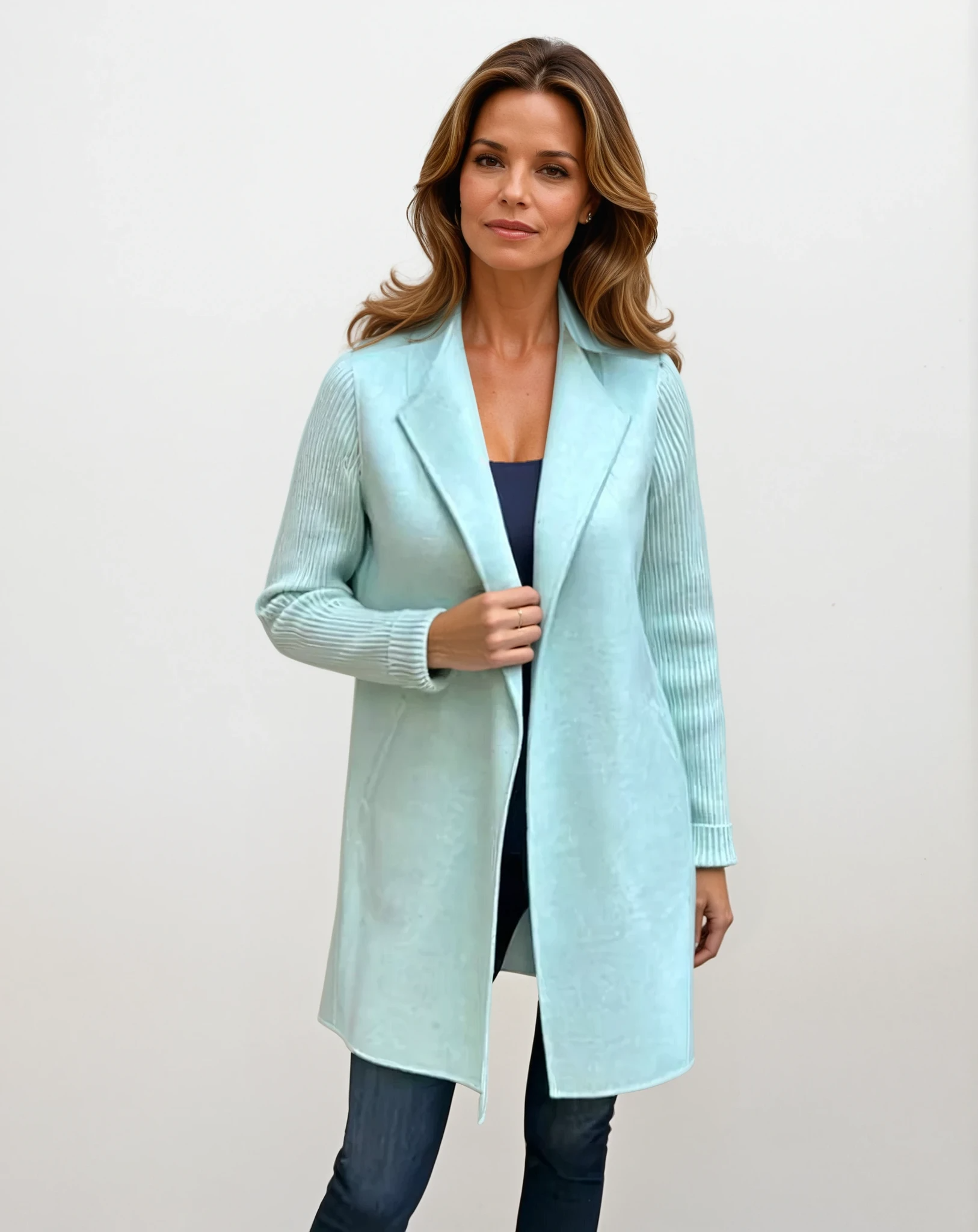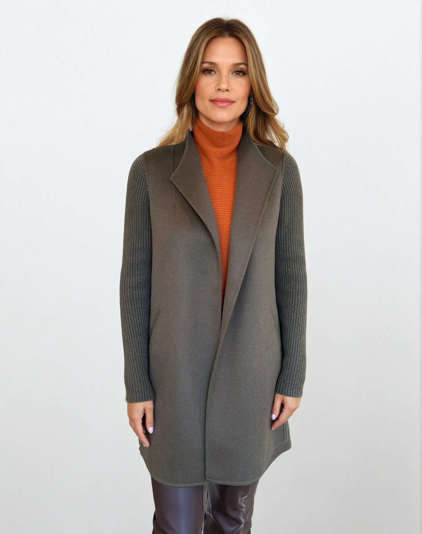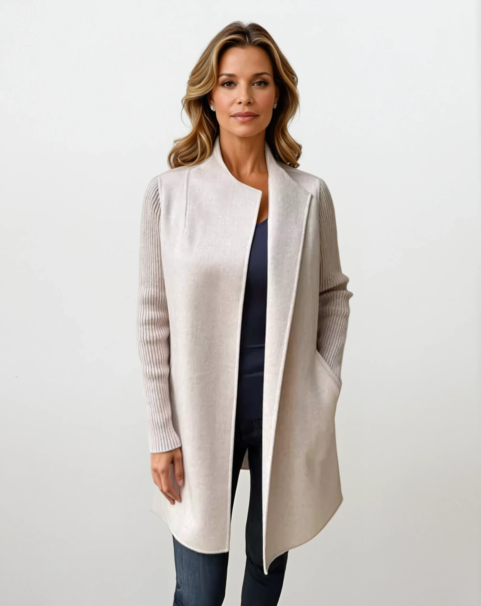 Effortlessly elegant and endlessly wearable, this open-front coat is crafted from a premium double-face wool-cashmere blend that drapes beautifully and feels incredibly soft. The clean silhouette is refined with tailored lapels and subtly structured shoulders, while the ribbed sleeves add a modern twist to this timeless layer. Lightweight yet warm, it’s the perfect transitional piece for crisp days and cool evenings.