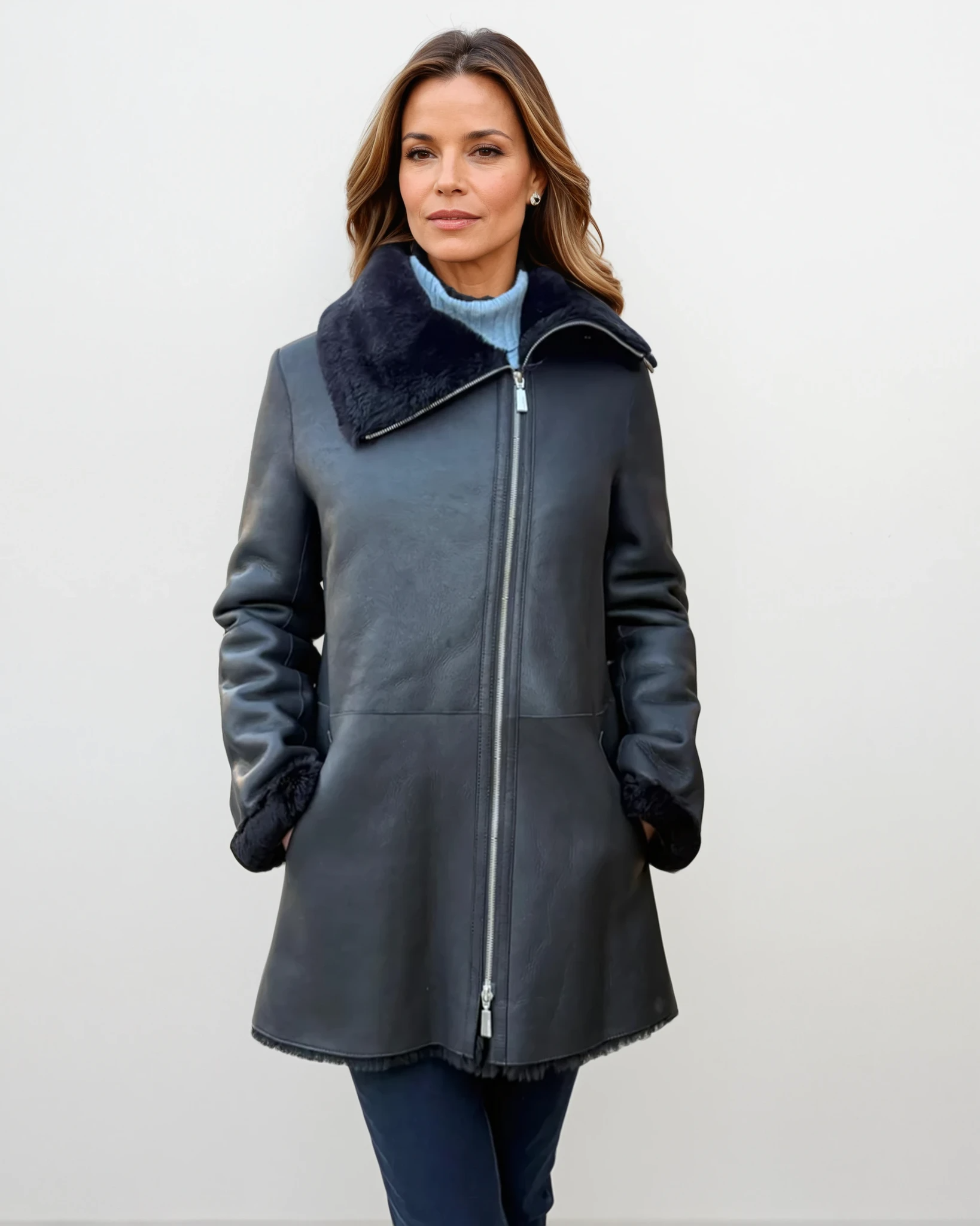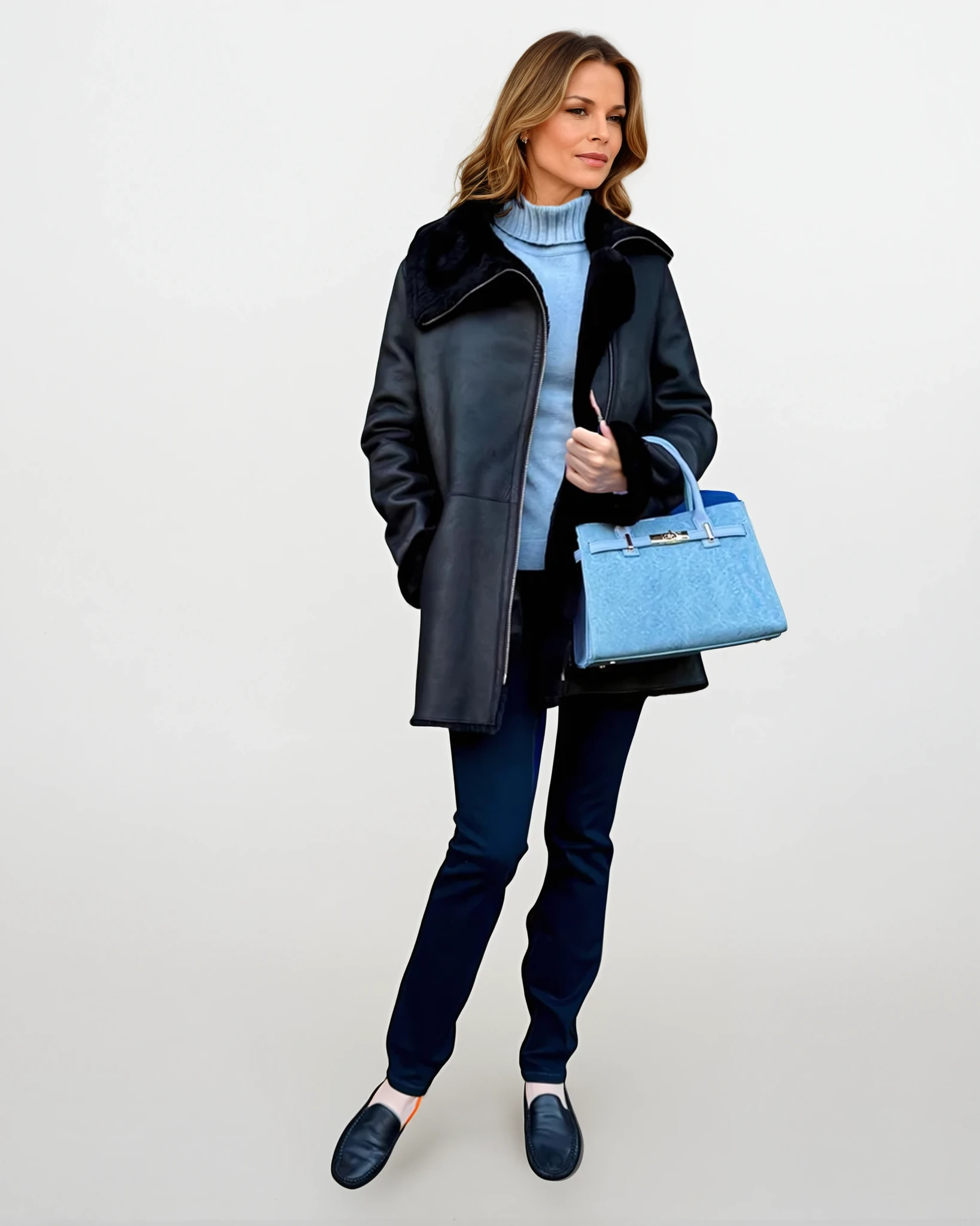 Indulge in timeless luxury with this genuine shearling jacket. Crafted from premium merinillo shearling—a refined form of merino lamb shearling—it offers unmatched warmth and softness, making it the ultimate choice for cold winter months. The sleek silhouette, clean lines, and refined zip-front design give it a modern edge, while the plush shearling interior ensures comfort in even the coldest weather.