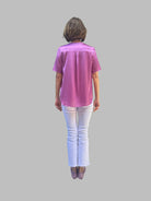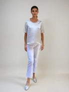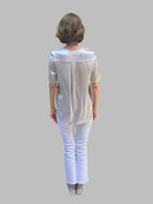 Effortlessly elegant, this fluid blouse from Purotatto features a silky, luminous finish and a subtly flared hem that adds graceful movement. Designed with a classic round neckline and short sleeves, it drapes beautifully for both dressy and everyday looks. An elevated essential that transitions seamlessly from day to night.