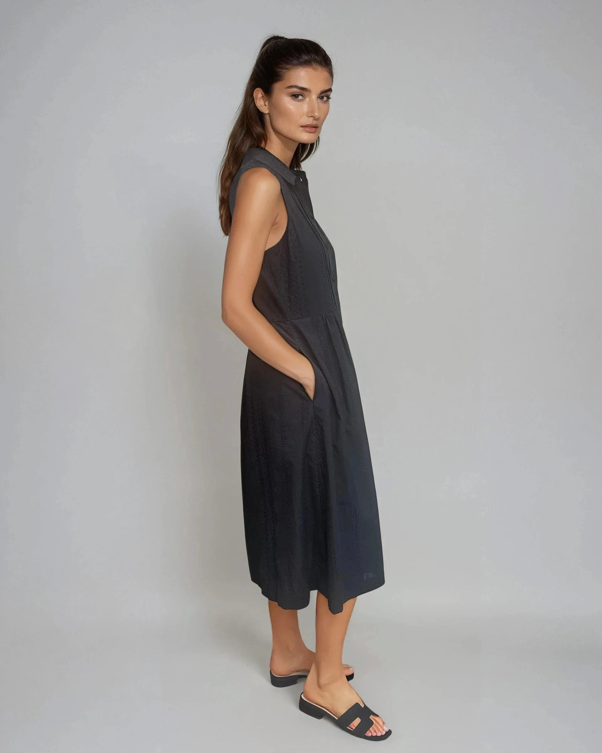 This shirt dress features a comfortable and versatile design that can easily be dressed up or down. Crafted from high-quality materials, it offers both style and functionality for any occasion. Its timeless look and flattering fit make it a must-have addition to any wardrobe.