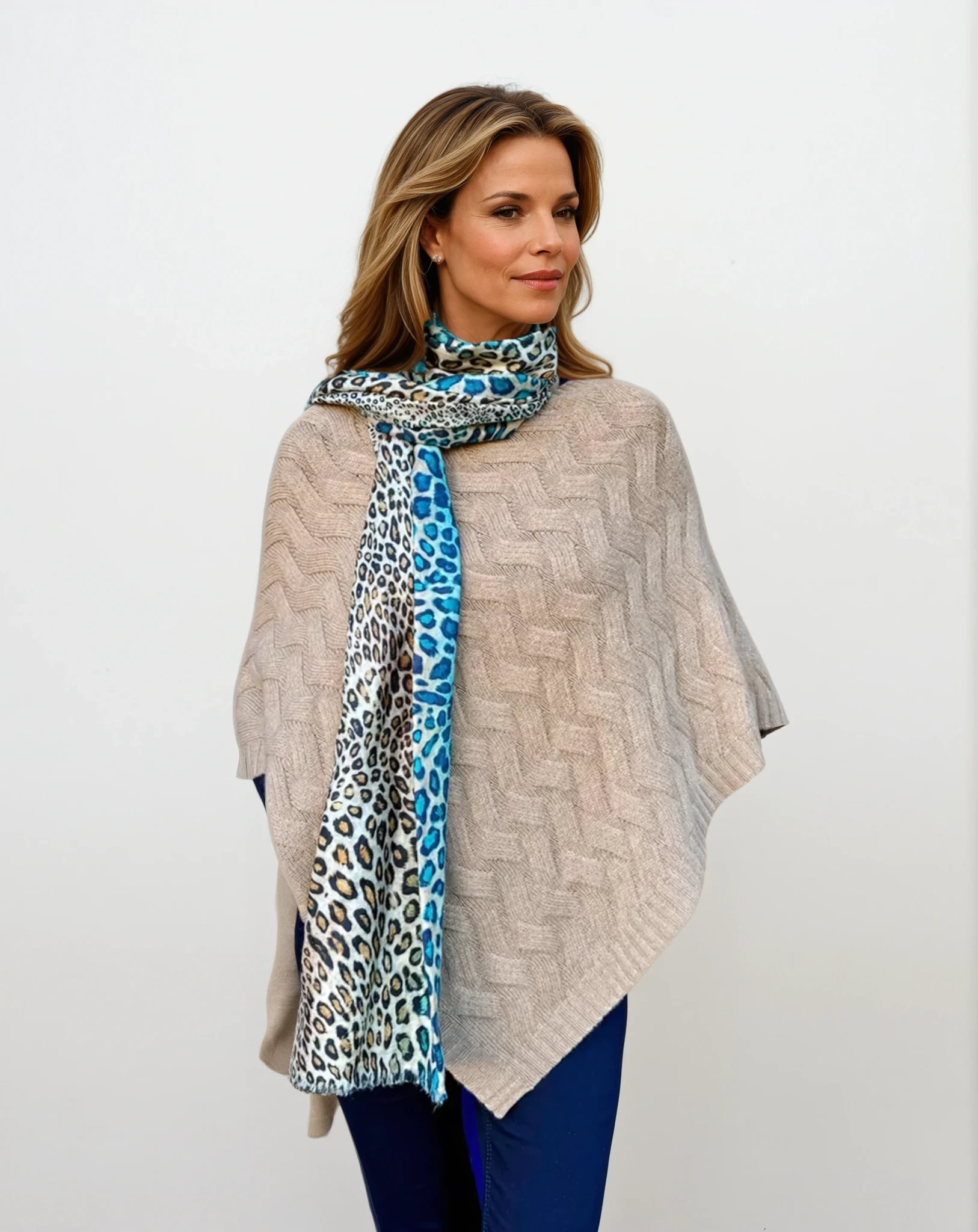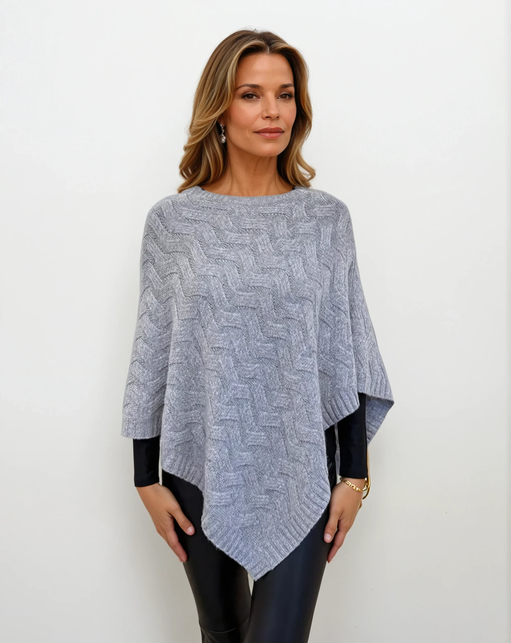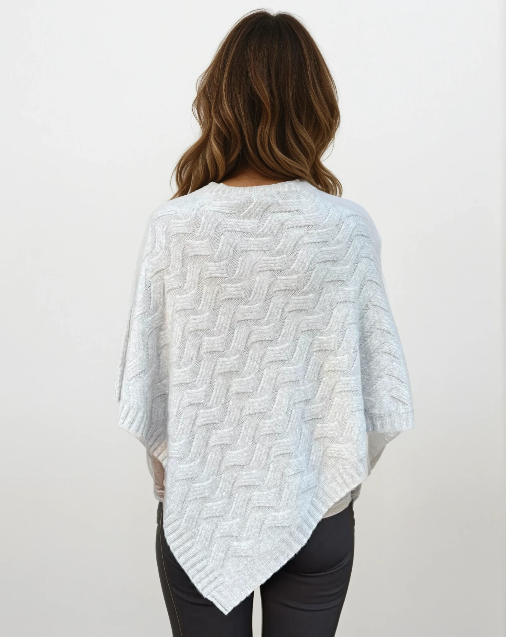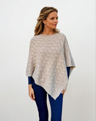This pure cashmere poncho is a timeless layering piece, crafted in a beautifully textured chevron knit. Its flowing asymmetric silhouette drapes effortlessly over the shoulders, adding warmth and refined elegance to any look. Lightweight yet luxuriously soft, it transitions perfectly from casual days to cozy evenings.
