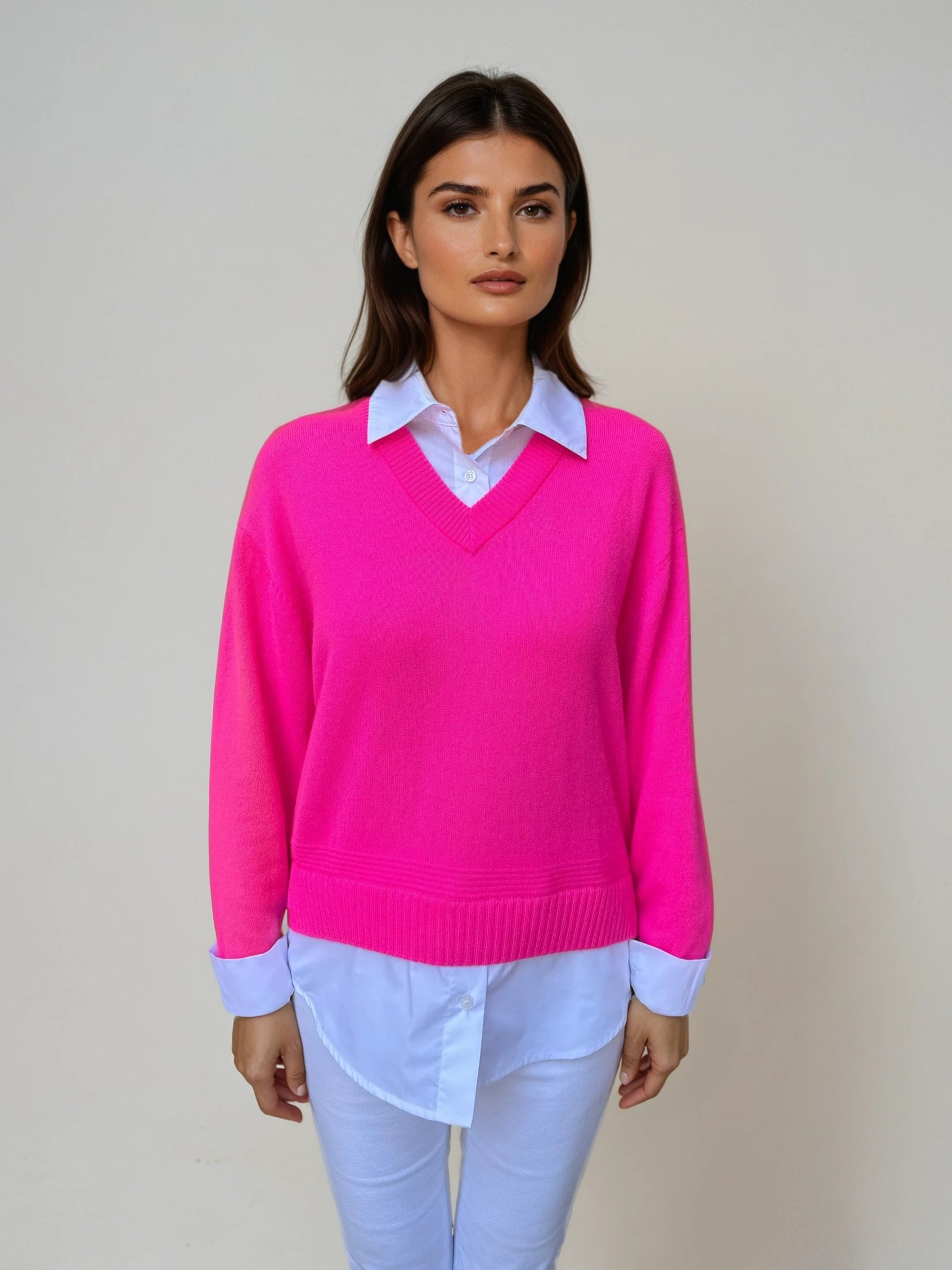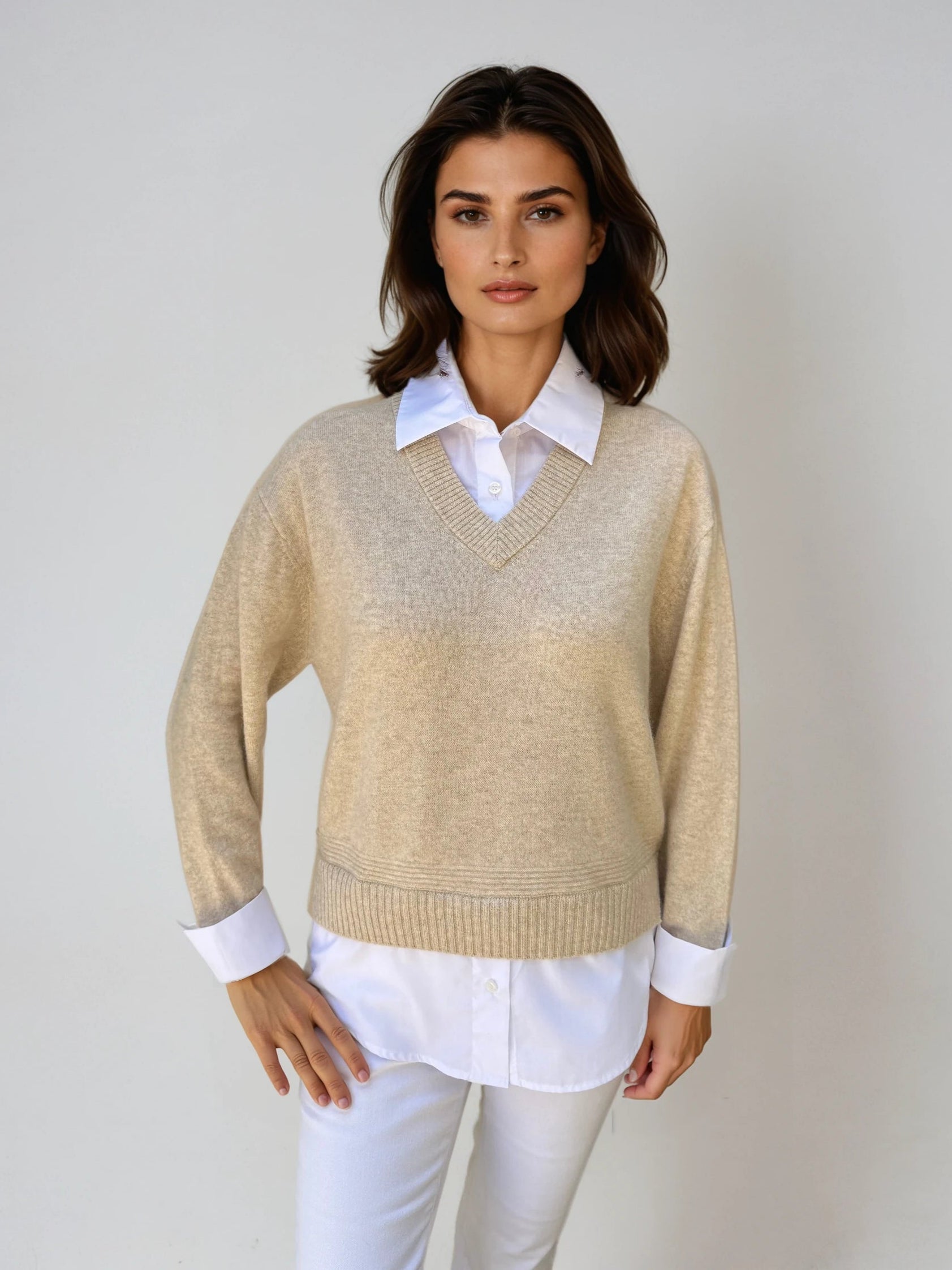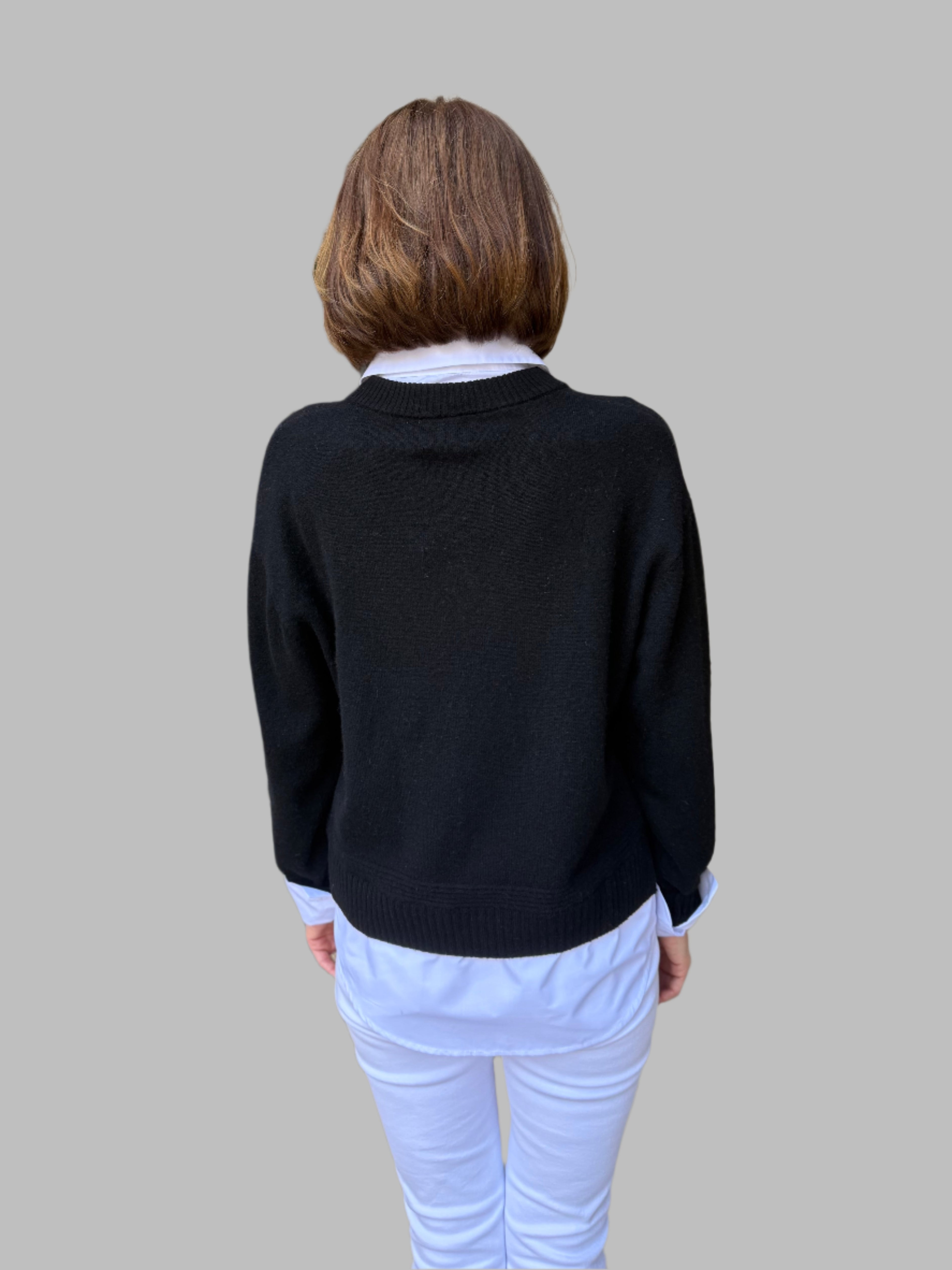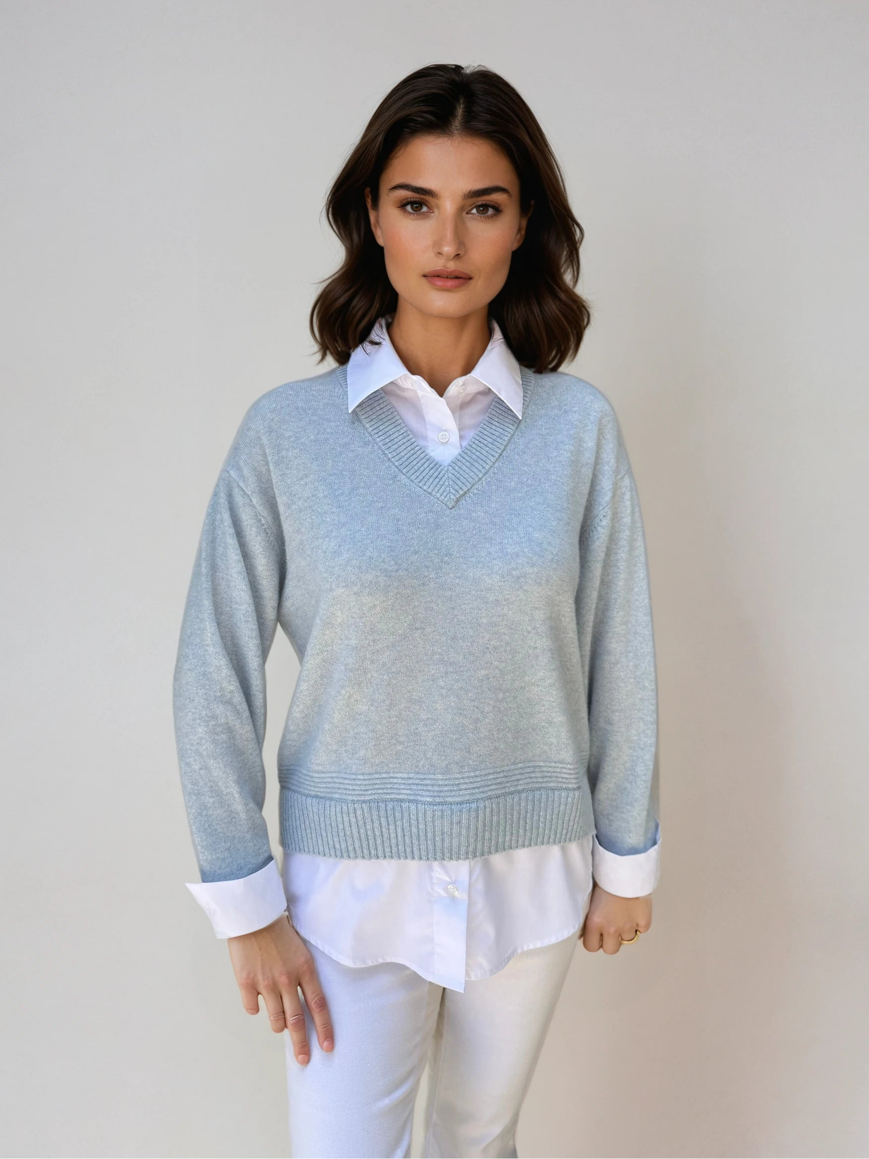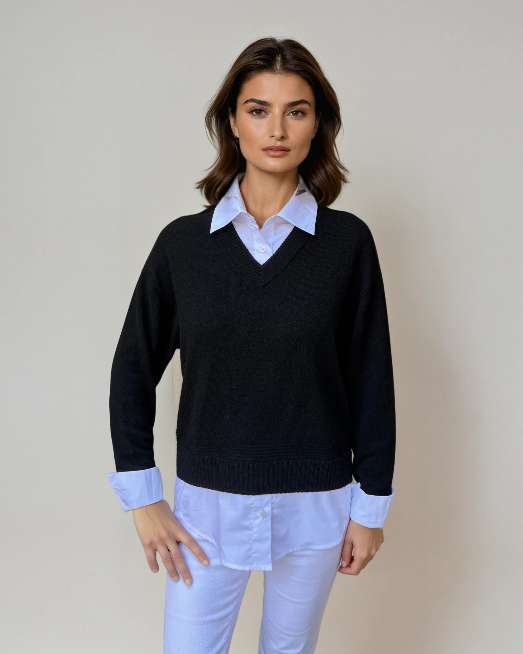 Chic and easy, this layered-look cashmere sweater combines the polish of a collared shirt with the comfort of luxurious knitwear. A timeless piece for effortless everyday style.