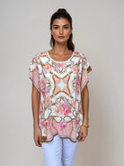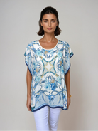 Elevate your style with this elegant poncho-style top, featuring an airy, printed outer layer and an attached tank top for effortless layering. The lightweight fabric drapes beautifully, while the bold border and intricate motifs add a touch of sophistication. Perfect for any occasion, it pairs effortlessly with jeans or tailored pants.