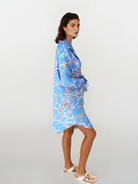 This elegant dress features a vibrant chain and geometric print, creating a stylish and sophisticated look. Its relaxed fit ensures comfort and ease of movement, making it a perfect choice for everyday wear or casual outings. The classic shirt collar and button-down front add a touch of timeless style, while cuffed sleeves complete the look. Crafted from luxurious silk, it offers a lightweight and smooth feel against the skin.
