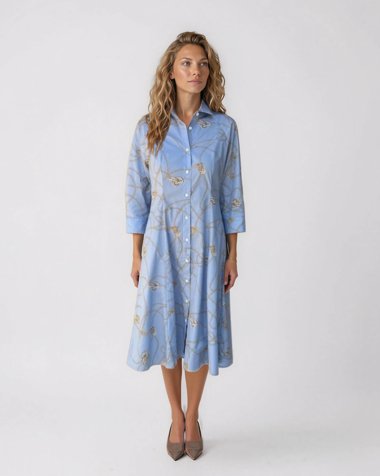 An effortless shirt dress designed with a relaxed, flattering silhouette and subtle structure. The fluid shape drapes beautifully while maintaining a polished look, making it ideal for both everyday wear and more elevated occasions. Finished with a classic collar, button front, and softly flared hem for ease of movement and timeless appeal.