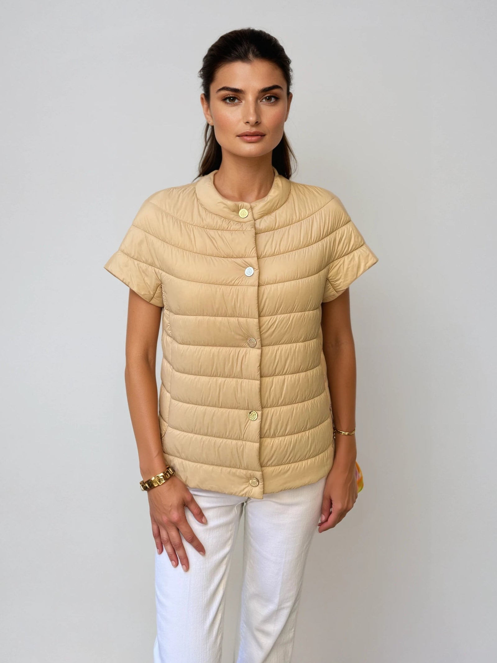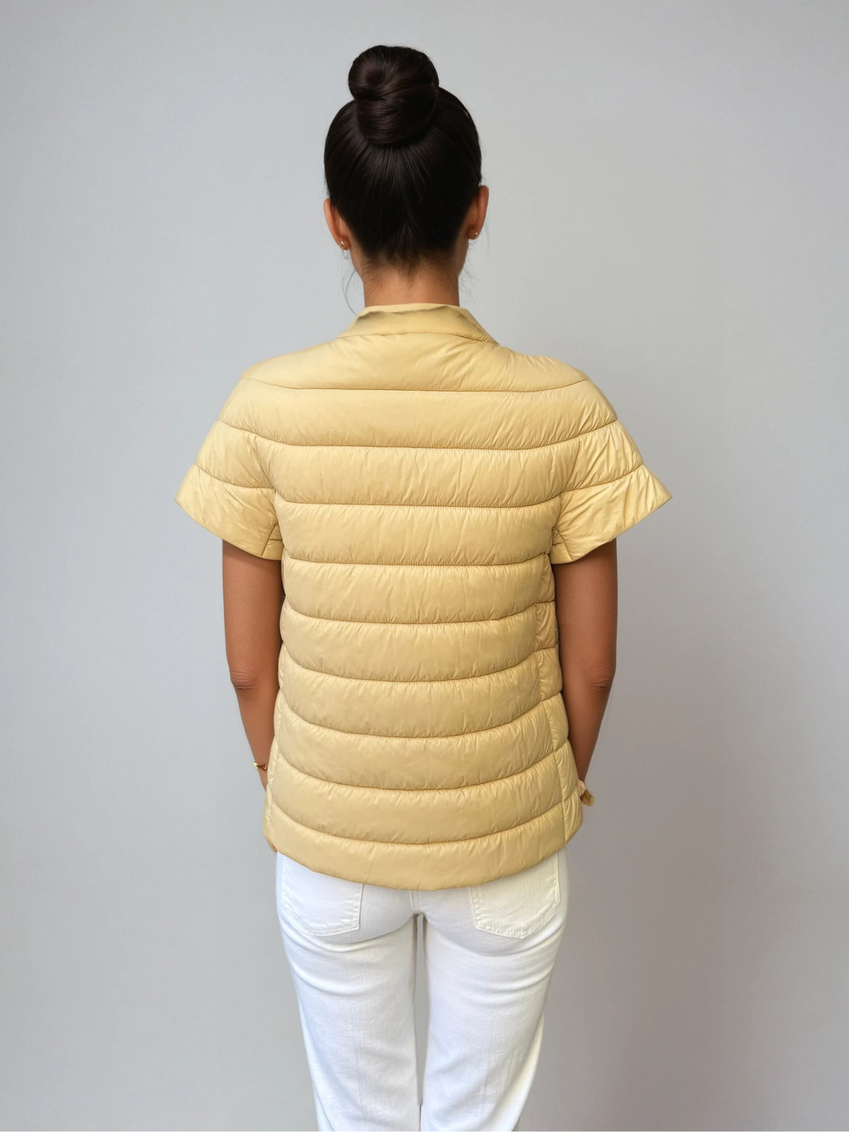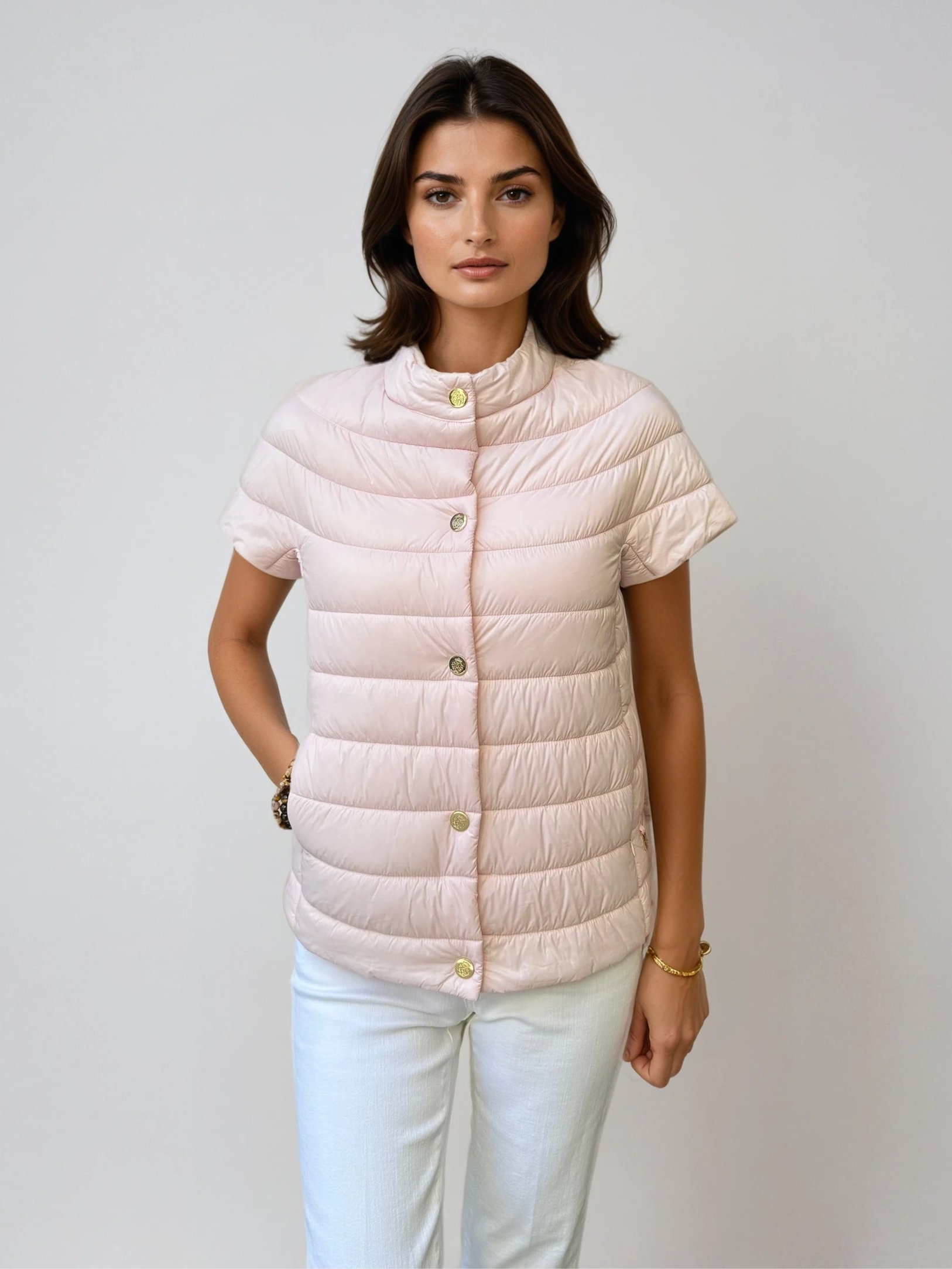 Introducing the Audrey Puffer, the perfect combination of cozy and cute. This timeless puffer jacket is made with 100% Nylon, ensuring warmth and comfort all season long. With logo gold snaps, cap sleeves, and inseam zip pockets, the Audrey Puffer is both stylish and functional. Hand wash cold and skip the dry cleaning for easy maintenance.